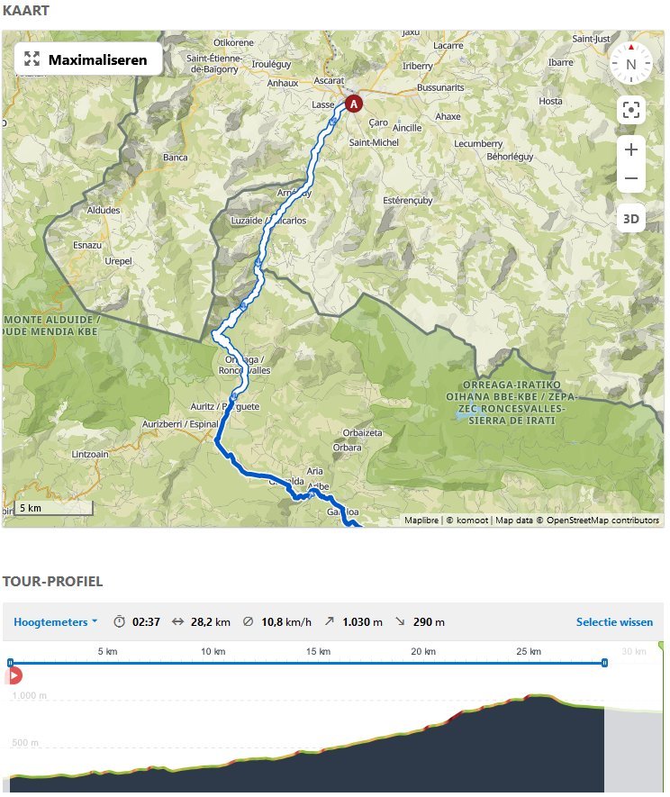 In Mei gaan wij vol bepakt van de Atlantische Oceaan naar de Middellandse Zee fietsen aan de Spaanse kant van de Pyreneeën. Hiervoor gaan we de Pyreneeën over bij Saint-Jean-Pied-de-Port en dat lijkt op 2 manieren te kunnen. Of op een iets grotere (drukkere) weg die wat geleidelijker omhoog gaat (screenshot 1 hieronder), of een rustigere weg maar met een relatief lang deel dat erg steil (>10%) is (screenshot 2). Heeft iemand ervaring met 1 van de 2 routes?