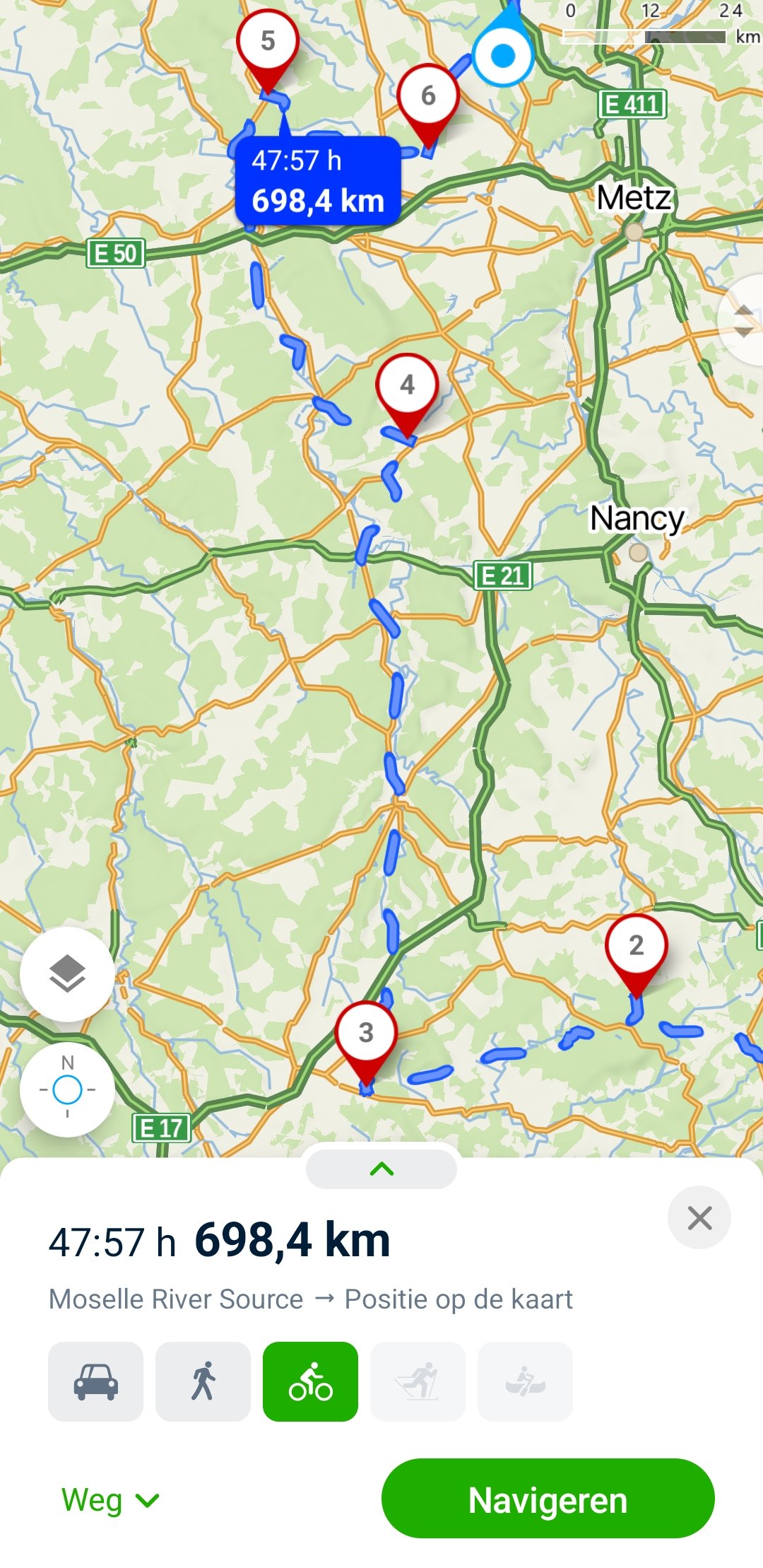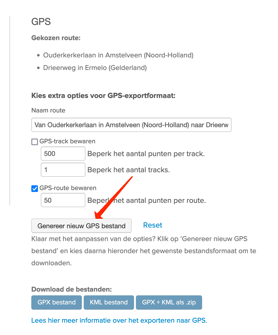 Toch doe ik iets altijd fout. Mijn toestel staat voor een route maximaal 50 tussenpunten toe. Gebruik ik bijvoorbeeld de routeplanner van de Fietsersbond, dan zeg ik veiligheidshalve: max 47 tussenpunten (wie weet worden begin en eind ook als een tussenpunt gezien, dan kom je op 49), maar de route die ik dan krijg is alles behalve een route met tussenpunten. Ik mag blij zijn als ik bij een 70km tocht de eerste afslag na 20km heb. Soms zeggen de deelvensters dat mijn eerste afslag even ver weg is als mijn eindpunt.