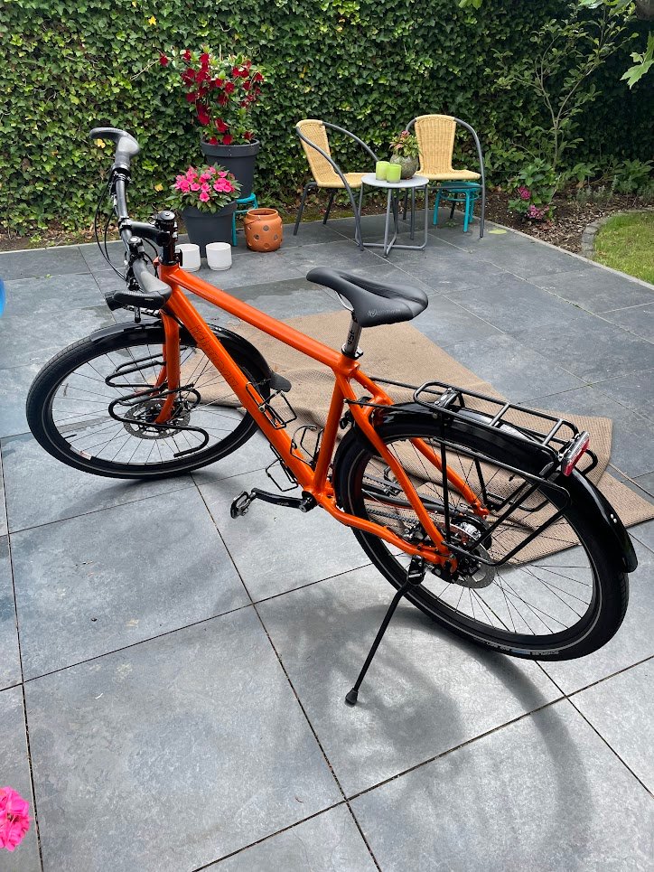 Fiets is perfect onderhouden (jaarlijkse olie wissel Rohloff en recent remmen laten reviseren (rekenening aanwezig).