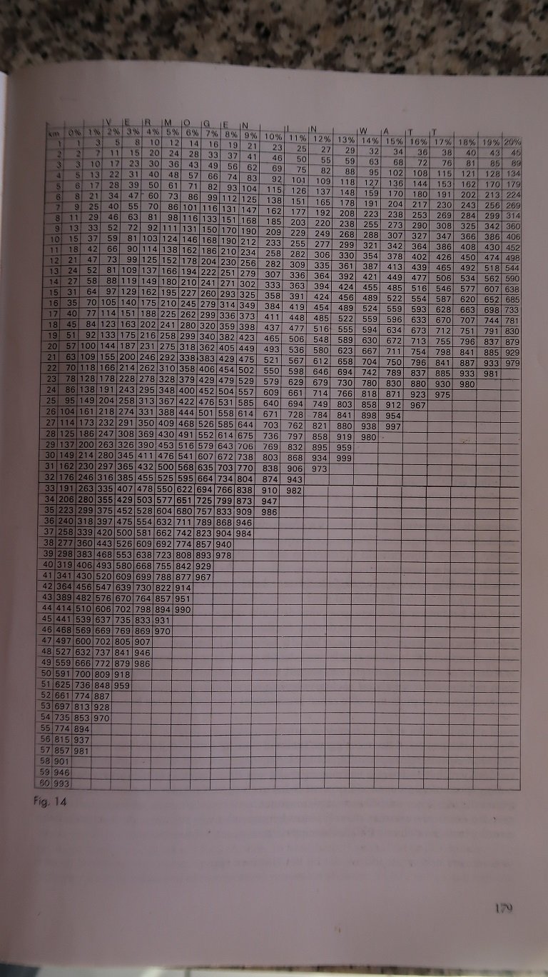 In de kolom 0% de watts 125 W is 28 en 150 W is 30 lijkt niet veel maar het klopt helemaal. Daarbij 1 kg zwaarder moet je 4 W meer vermogen leveren. Sorry voor mijn afwijking, doe heel erg graag aan feiten en cijfers.