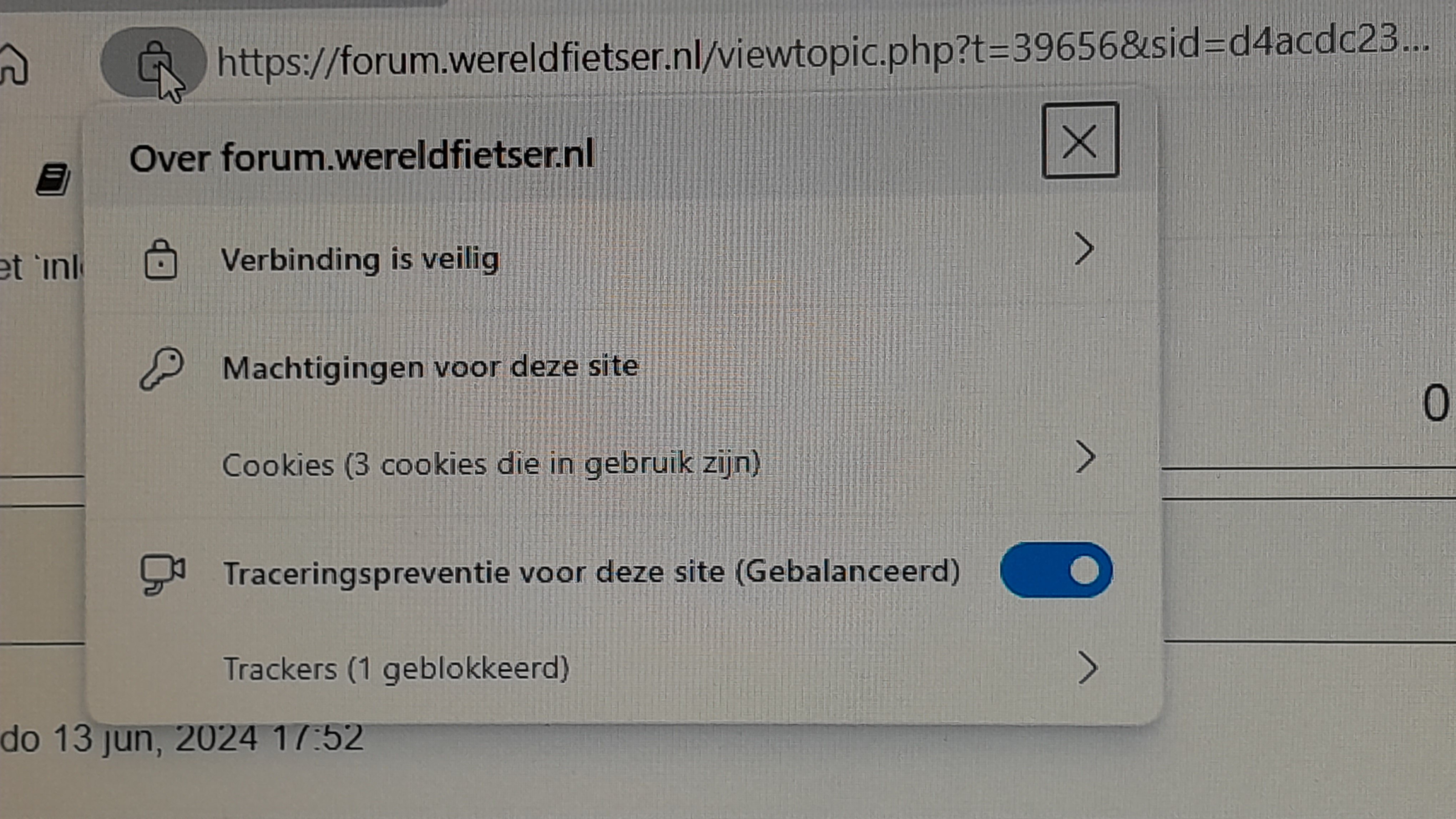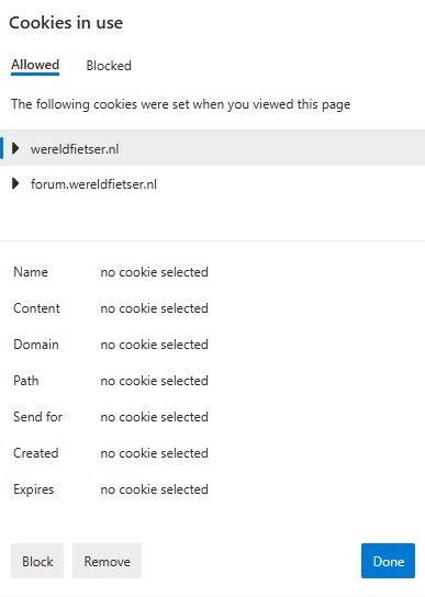 Dan zie je 2 dikgedrukte regels, wereldfietser en wereldfietser forum met een driehoekje links