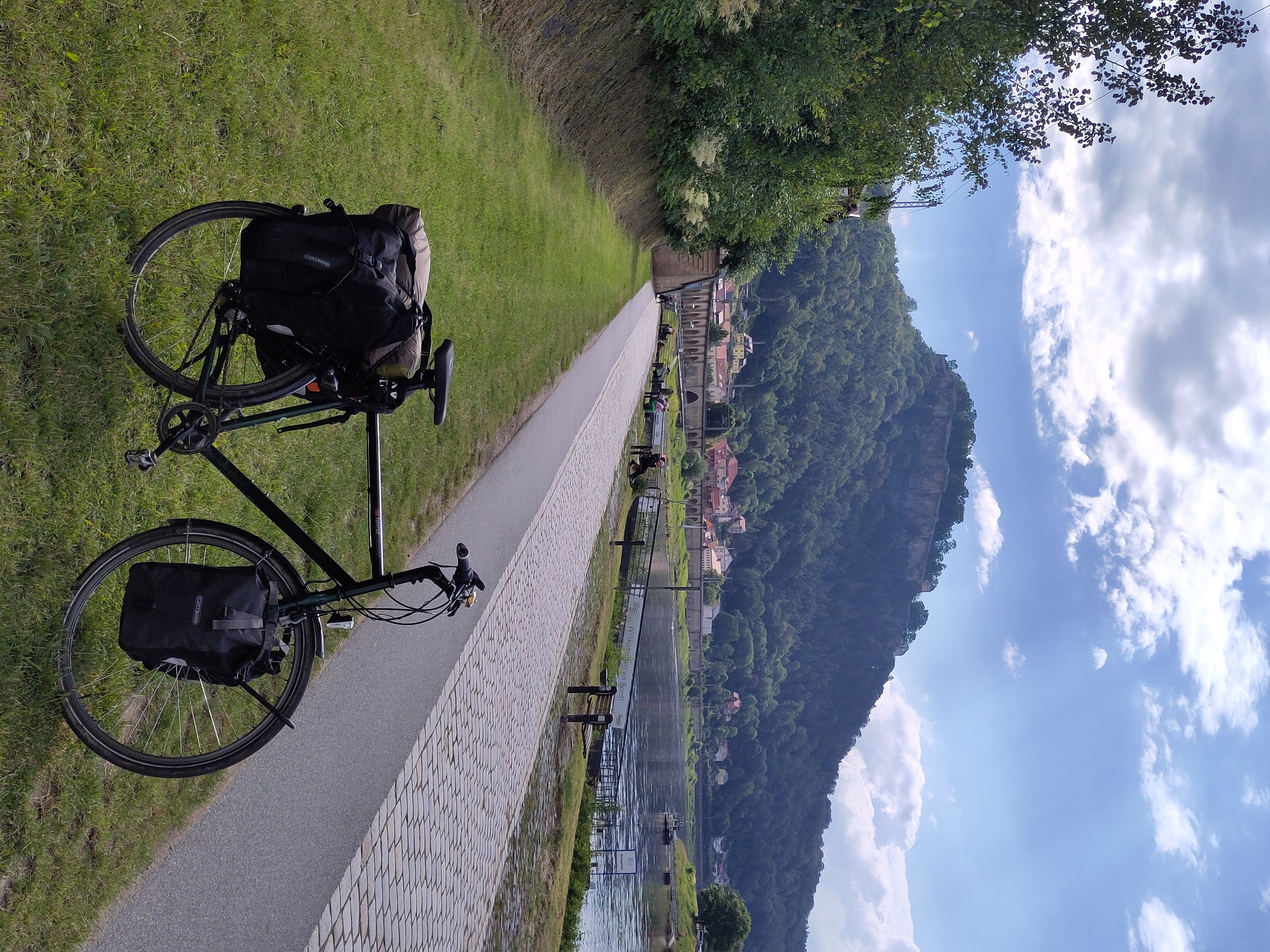 Hey Allen, bedankt voor het meedenken. Ondertussen de eerste 500km gereden op de VSF T900. Van Praag naar Dresden, mooi kalm an, maar wat een fijn stuk techniek. Stabiel, geen gezwabber ondanks de bepakking, zelfs met 35km plus heuvelaf een hand van het stuur om een vlieg uit het oog te halen was geen probleem. En wat een genot, die Rohloff naaf..