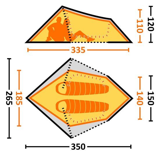Binnentent: 335x140x105
