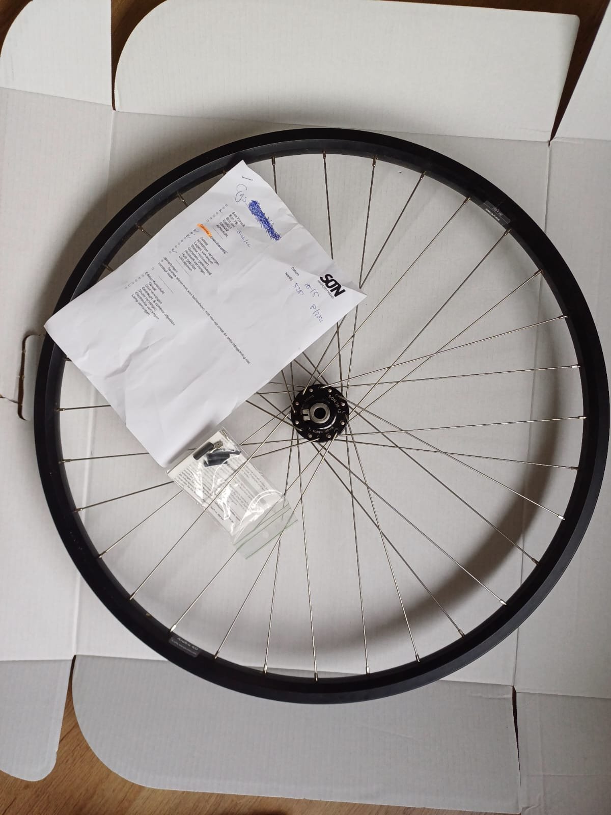Vanwege een gedeeltelijk garantiegeval en logistieke kwestie heb ik twee handgespaakte wielen met SON dynamo, waarvan ik er eentje wil verkopen. De ander laat ik omspaken, dus het maakt me weinig uit welke ik houd.