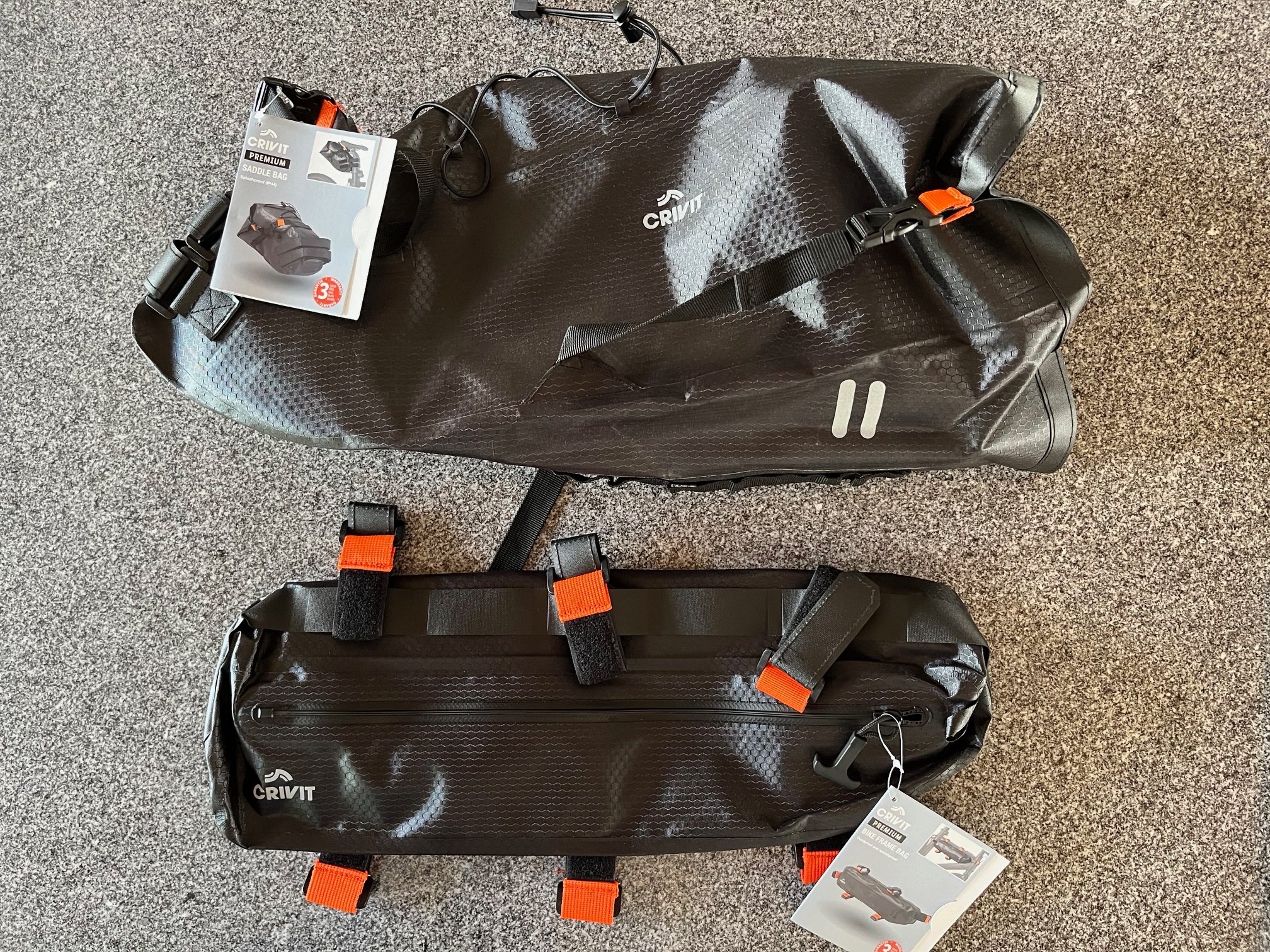 Omdat een frametas op allerlei fietsen van pas kan komen, heb ik die later ook gekocht. De rits zal niet zolang meegaan als die van Apidura, verwacht ik, maar dat hoeft ook niet.