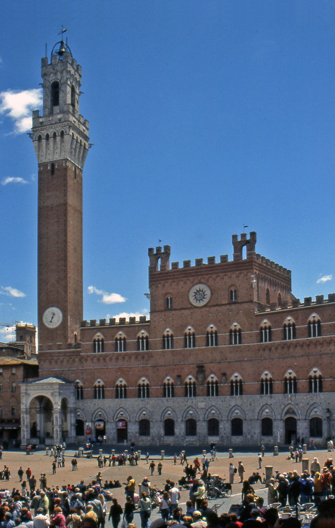 Ach, is daar zelfs veel te beroemd voor: il Palazzo Publiccio in Siena. Met de 102 meter hoge 'Campanile'. Kon vanaf het hellende, schelpvormige plein zo naar binnen fietsen en de toren daar beklommen.