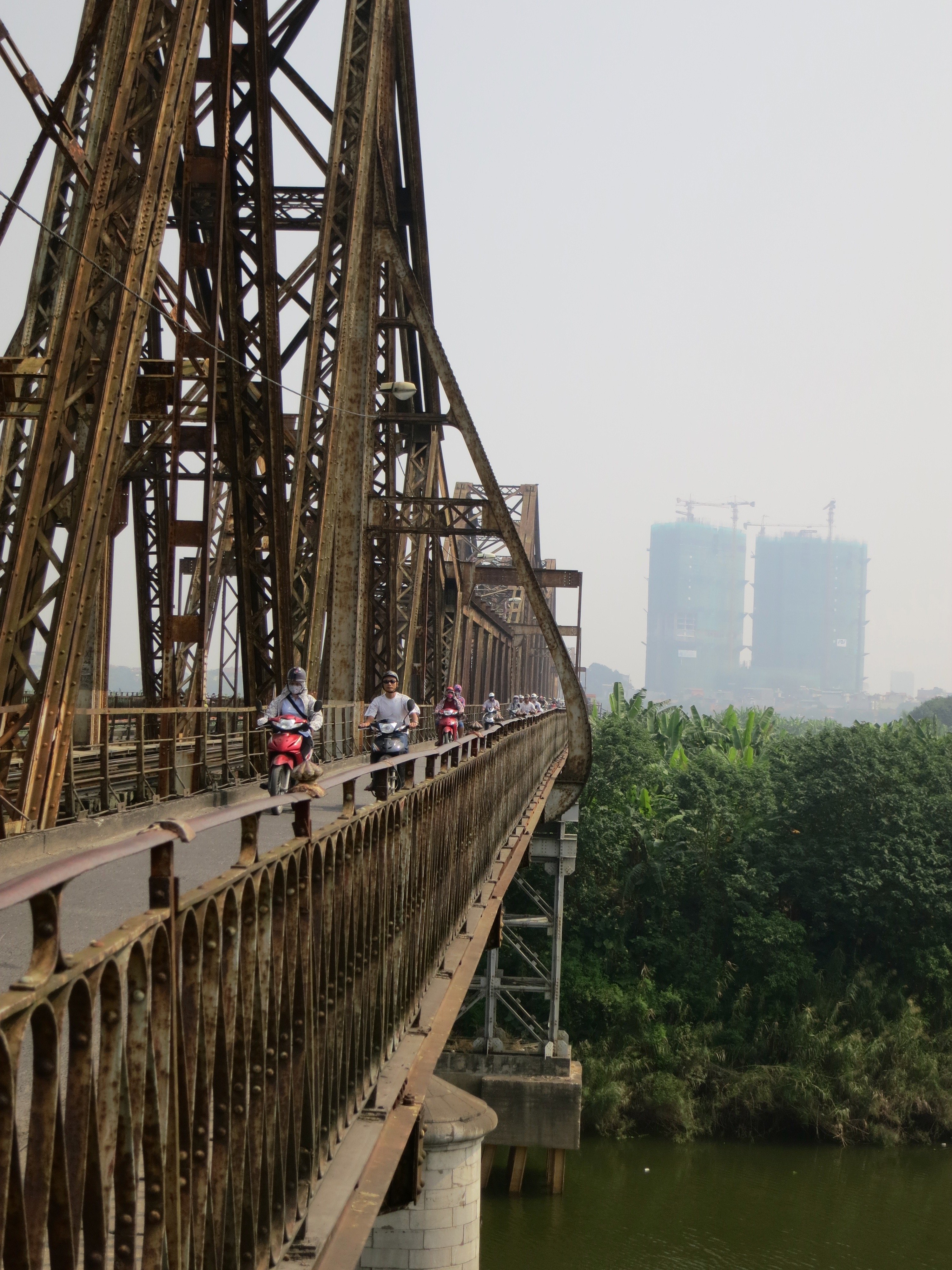 Je staat hier op de Cau Long Biên, hier ongeveer.