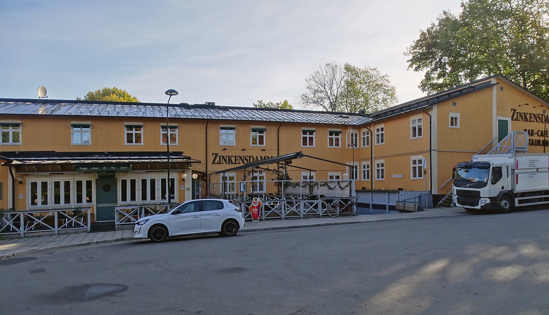 Het rode huis met de grijze blokken is voor Stockholm wat de hangende keukens voor Appingedam zijn, zo bekend is het. We zijn afgelopen 21 jaar al zowat veertig keer naar Zweden gereisd, maar spijtig genoeg Stockholm nooit gezien.... op oktober 2023 na, ik moest met spoed naar ons tweede huis in Zweden toe (water afsluiten), per vliegtuig naar Arlanda airport en daar een auto gehuurd. Omdat het al laat in de avond was, overnachtte ik in de jeugdherberg van Stockholm, zie foto met mijn witte huurauto ervoor.