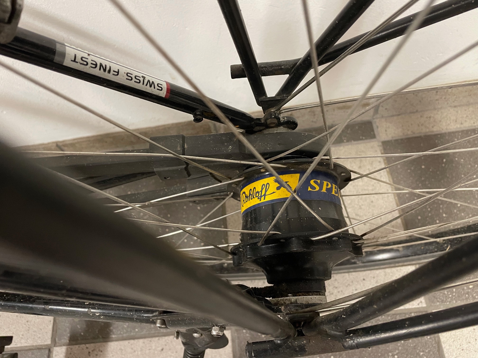 Merk: Villiger (Zwitsers fabrikaat) Cabonga Ro (dus Rohloff naaf; 14 versnellingen).