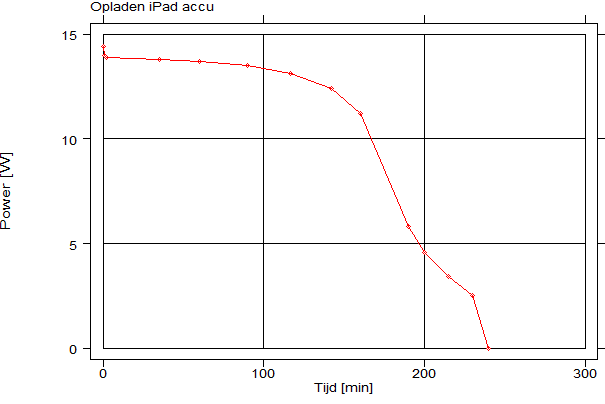 Bij de iPad zijn de vermogens lager, ook omdat mijn Apple 5.2V - 2.4A lader maar ca. 13 W max kan leveren.