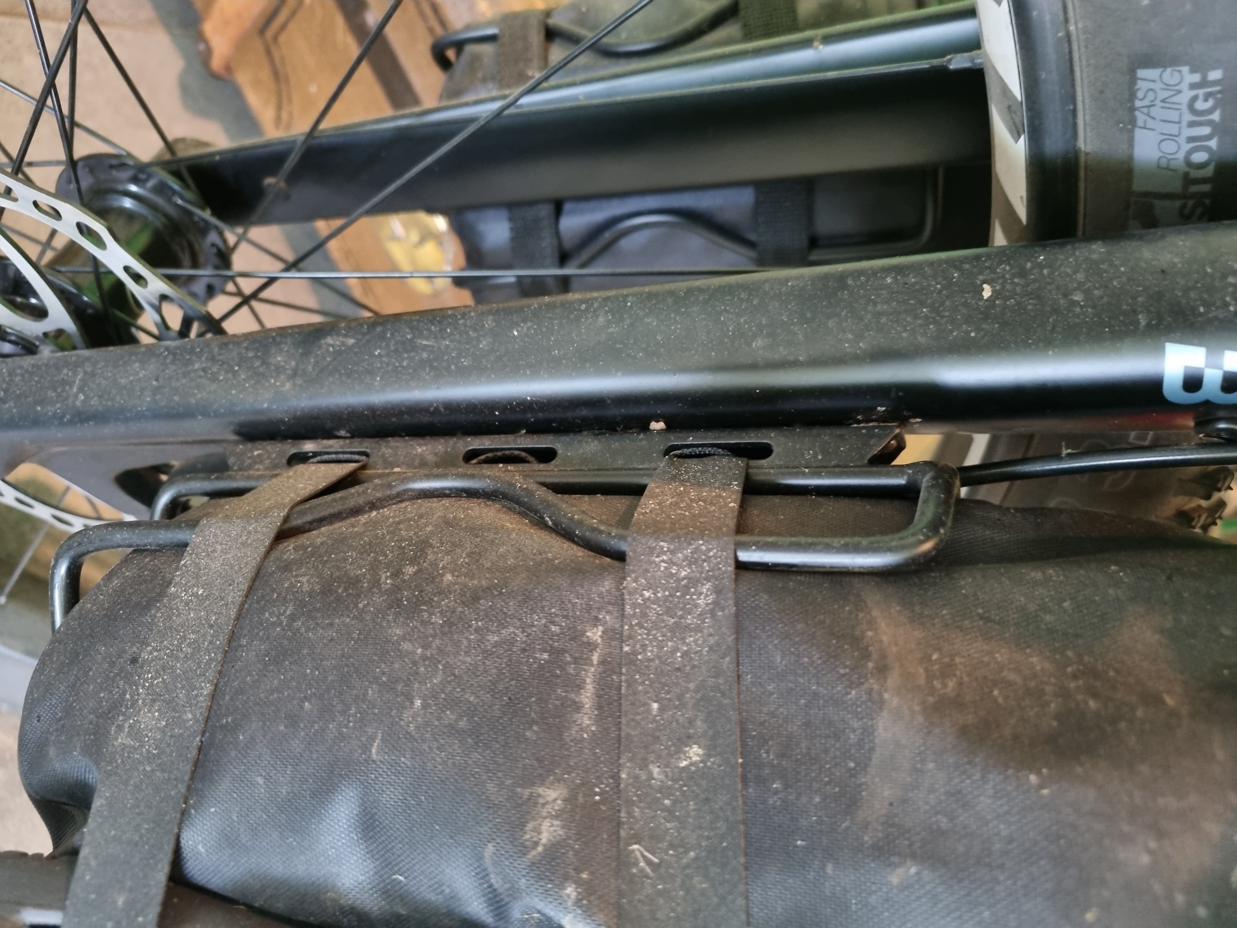 Alles zit stevig en rammelt nooit los. Ook handig als je lui bent bij 't bikeraften want dan leg je de hele fiets met bagage en flessen en al gewoon plat op 't bootje. Moet je wel zeker weten dat er geen stroomversnelling of erger om de hoek ligt :wink: