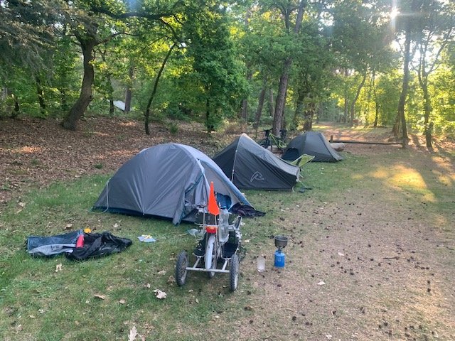 op dit mooie plek even de adembenemende uitzicht aanschouwen en de mens even voorzien van energie. Om onze weg te vervolgen over de posbank waar het merendeel gravelstroken was die goed te berijden waren via loenermark en nationaalpark veluwezoom waar je op de paden mag fietsen dan richting deelerwoud verder door hoog buurlose heide richting de camping huttopia de veluwe