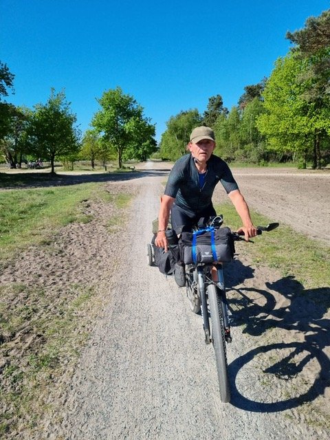 ikzelf ook even op de foto en dit alles op eigen tempo en even weer op elkaar wachten. Deze route ging over kootwijkerzand via noordenheide langs het verscholen dorp en via kroondomein naar onze laatste stop om de tocht te beëindigen