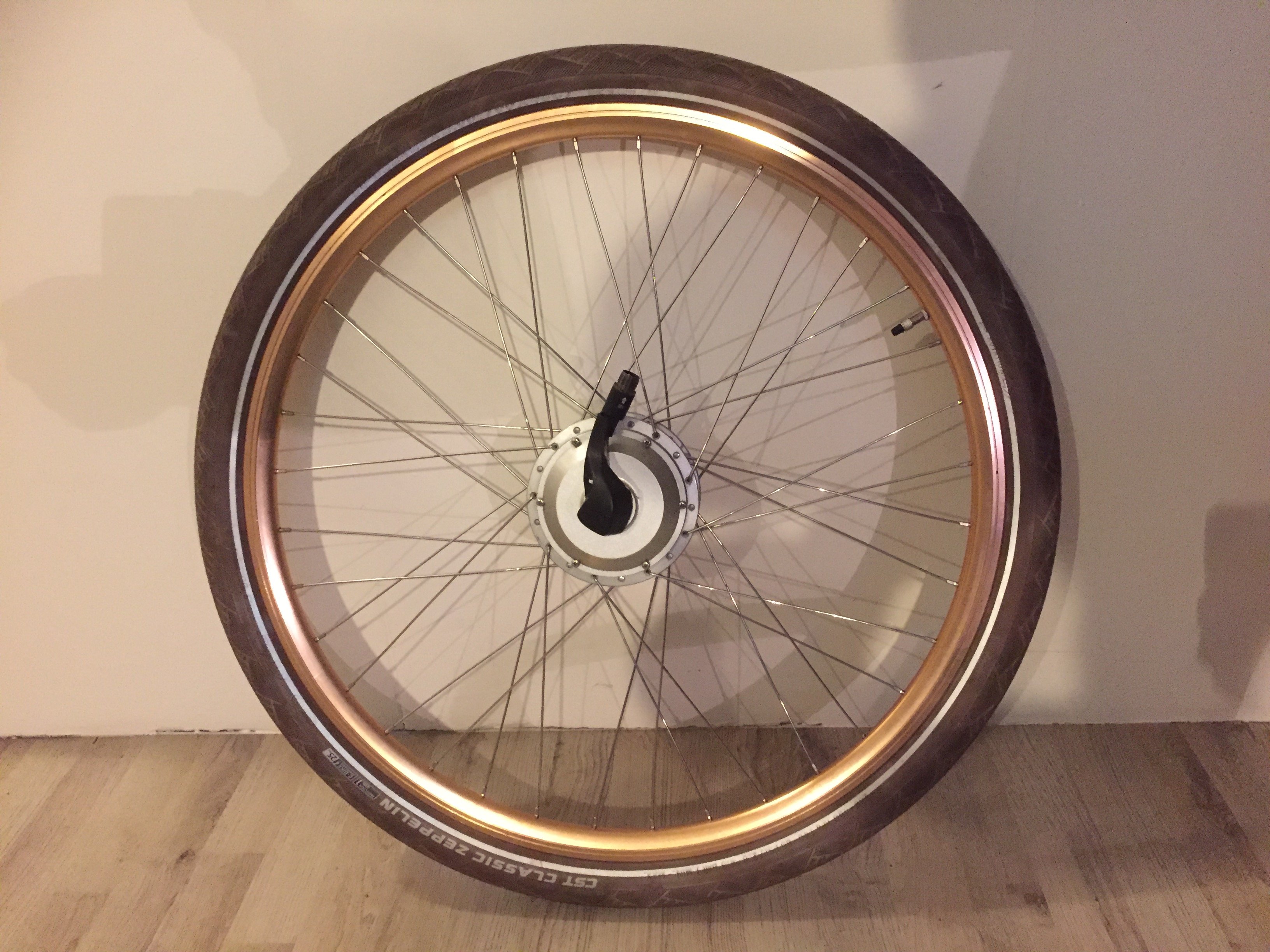 Mijn fiets heeft allemaal koper kleurige accenten. O.a. de velgen zijn koper kleurig. Dit is de reden waarom ik de velgen heb hergebruikt. En remblokjes op de velg, zou de koper kleur er in no-time af halen.
