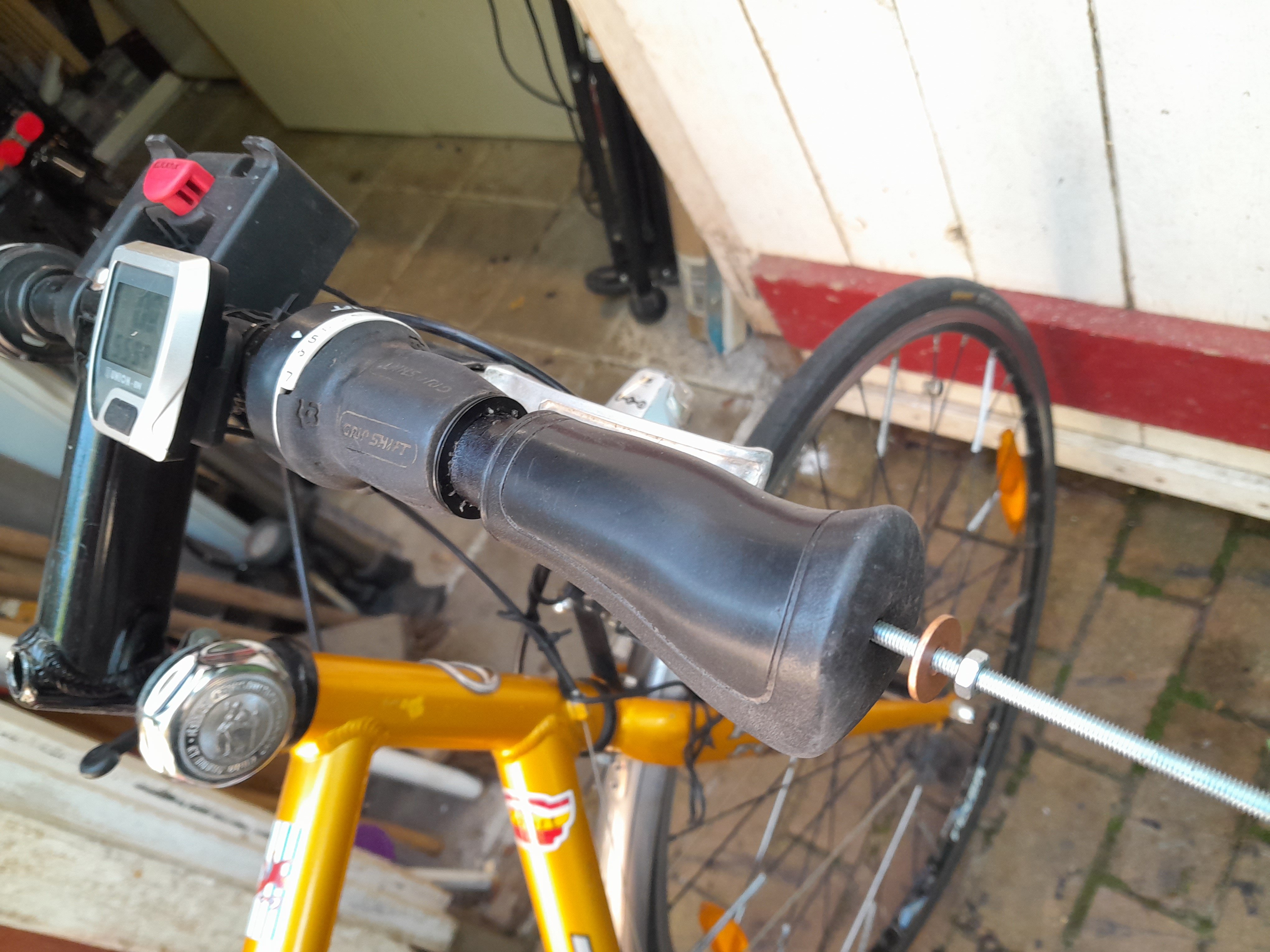 Al jarenlang schoven de handvatten op mijn fietsstuur tijdens het rijden half los. Dan wringde ik ze weer terug tot de uiteinden van de horizontale stuurstang. Van alles geprobeerd om het oppervlak ruw te maken en zo. Met dit warme weer gleden de handvatten weer los.