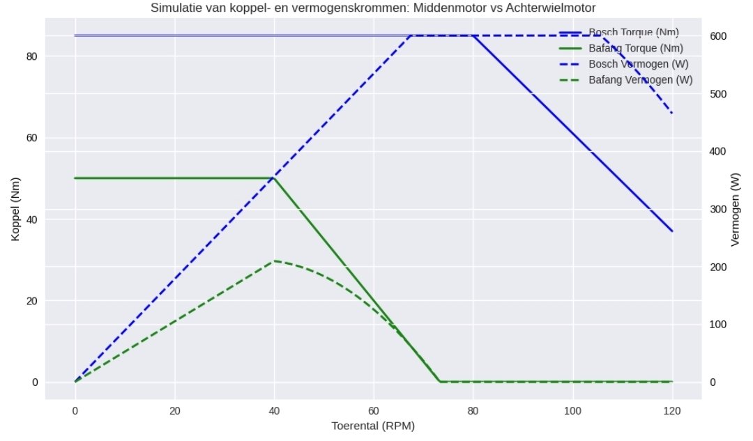 Bij hogere snelheden kan een achterwielmotor net zo veel vermogen leveren als een middenmotor.