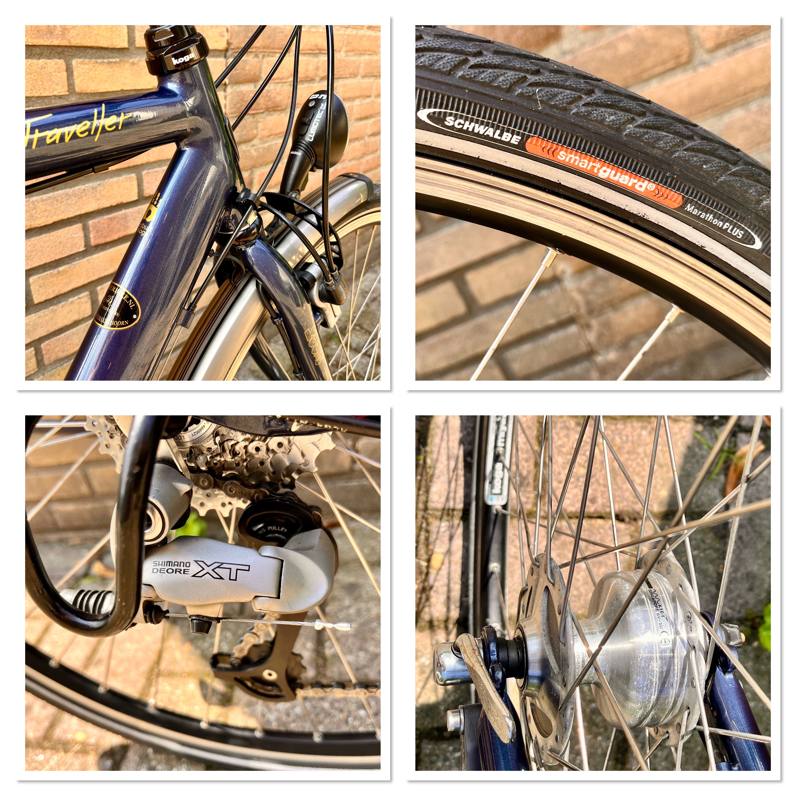 De fietsen zijn beide door mij ( mechaniker bij een wielervereniging) volledig gedemonteerd, Alle onderdelen nagekeken, schoongemaakt, gesmeerd, Kabels, remblokken, tandwielen en ketting zijn vernieuwd. Tevens passende Koga voorwielen met naafdynamo gemonteerd. Daarna volledig opgebouwd. De fietsen zijn nu weer in nieuwstaat en direct bruikbaar voor grote reizen en afstanden.