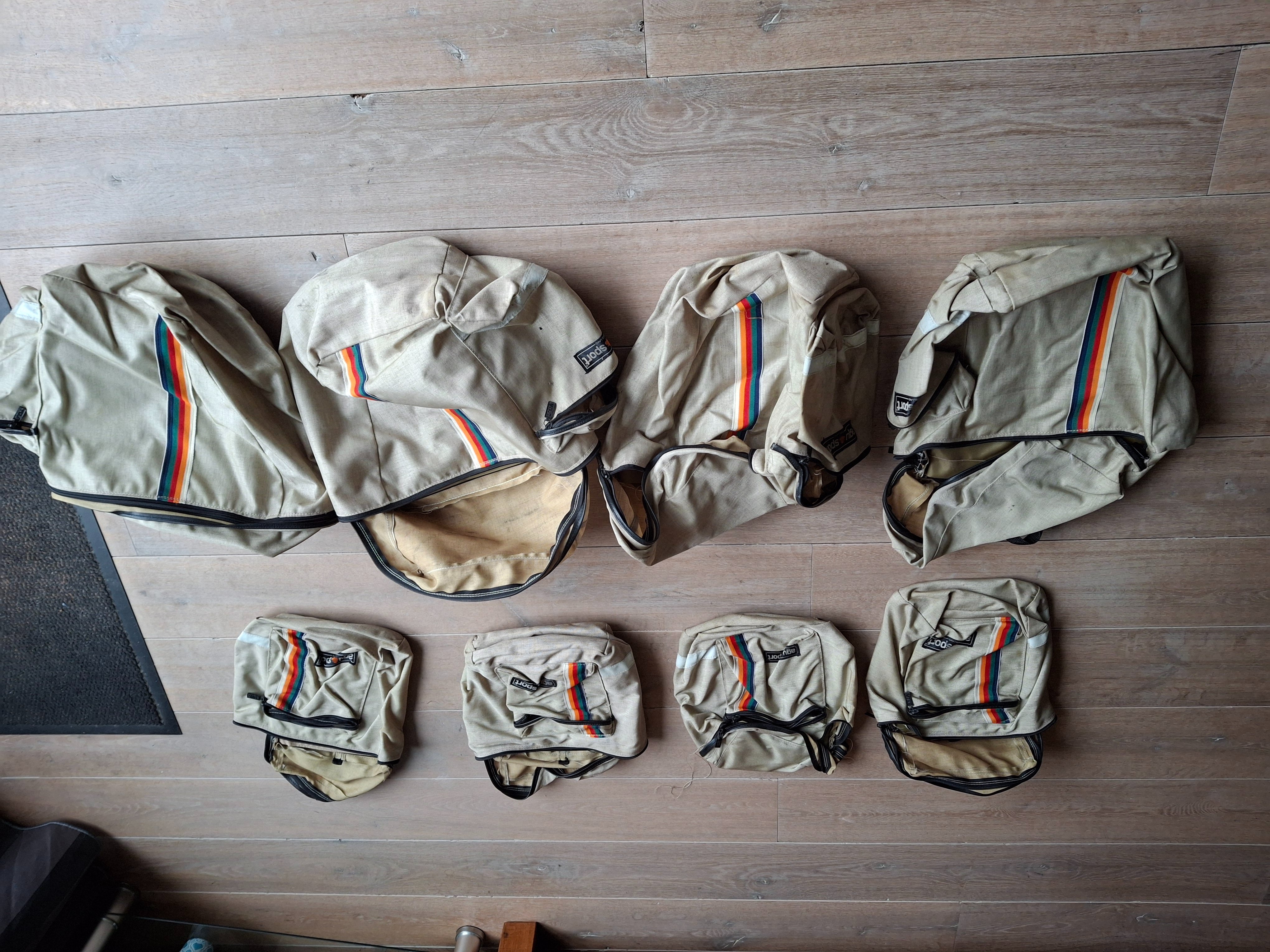 Gratis op te halen van het merk agu sport 4 kleine fietstassen en 4 wat grotere fietstassen. Ze zijn niet waterdicht. Plus 2 voordragers.