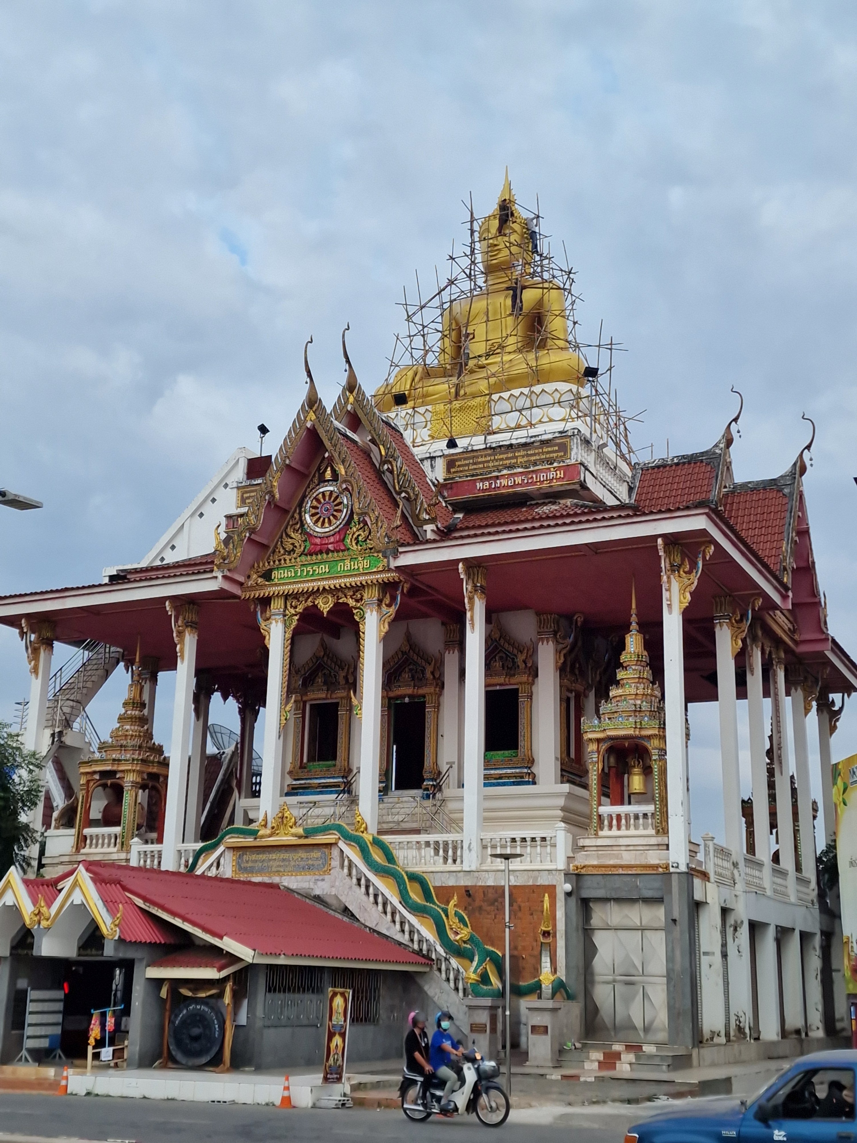 Vandaag plan ik een minder lange rit zodat er voldoende tijd is om Phu Langhka National Park te bezoeken, een steenworp (10 km) van mijn hotel. De belangrijkste attracties van dit park zijn de NaKee Cave en de verschillende merkwaardige rotsblokken die op geschubde slangenkoppen lijken. Een waterval en viewpoint maken het af. Ik parkeer mijn fiets nabij de welkomstgebouw waar ik ook mijn toegangsticket koop. Ik kijk wat vertwijfeld rond en vind dan toch de start van de wandeling naar Nakee Cave. Ik stap gezwind over een kronkelend asfaltpad dat me tussen bamboebossen leidt. Een parkwachter aan de kant van de weg spreekt me aan in het Thais en maakt een soort verbodsteken met zijn armen. Ik behelp me met mijn vertaal-app en kom te weten dat het verplicht is een gids te nemen aan de ingang van het park. Oh! Terug naar af. Aan de gidsenkiosk vraag ik of ik een gids kan krijgen, hoeveel dit kost, en hoe lang de geleide wandeling duurt. De dame zegt dat het drie uur duurt, 500 bath kost en ze wijst naar een schattig oud dametje met roze trui, groen veiliheidshesje, legging, pruisisch-blauwe crocs, rugzak en expeditiehoedje die de begeleiding op zich zou nemen. Ik ben behoorlijk ongevoelig voor mode, maar dit doet toch een beetje pijn aan de ogen. Zo’n bejaardentour is niet wat ik in gedachten had – ik zou dan pas terug op de fiets zitten tegen de middag, waarna ik nog een kleine 100 kilometer zou willen rijden. Vertaal-appsgewijs vertel ik dat drie uur wat lang is gezien mijn geplande fietsrit. Daarop volgt een geanimeerd gesprek tussen de receptiedame en het gidsje, met veel gelach, ‘oooh’s’ en ‘aaah’s’ en ik kan nog net ‘hundred kiloooo’ onderscheiden, gevolgd door een ‘ooooh’ van het gidsje. Die laatste knikt vastberaden in mijn richting en de receptiedame laat me weten dat mijn gids de klus kan klaren in 2 uur. OK, dat maakt me benieuwd – ik stem toe. Ik smelt ook wel een beetje van de gulle vriendelijke glimlach van mijn nieuwe gids.