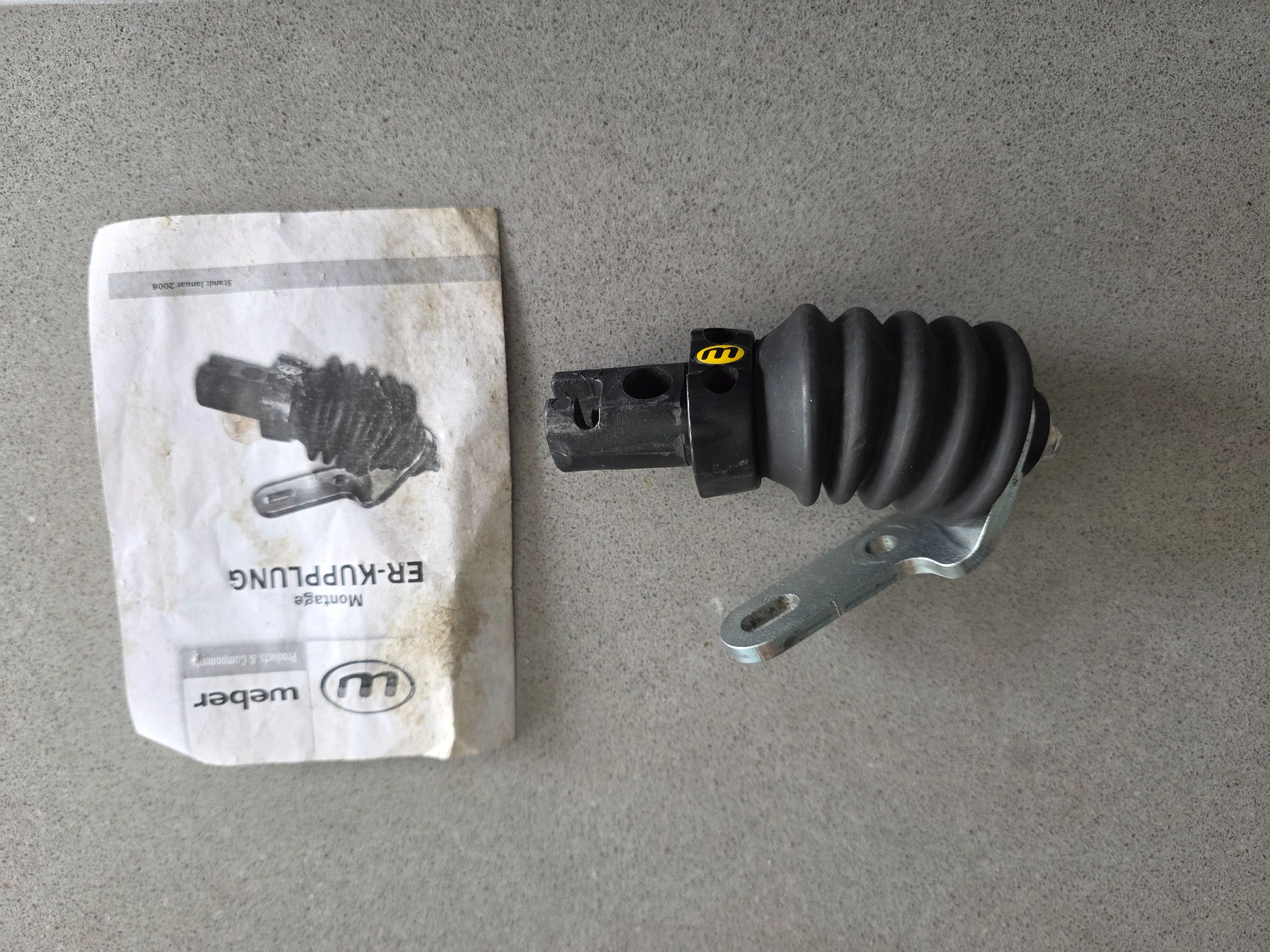 Deze Weber Er-koppeling is op zoek naar een enthousiaste nieuwe eigenaar. Gebruikt voor een fietsaanhanger en een kinderfietskar. Ideaal in gebruik. Ligt alweer aantal jaartjes werkeloos te wezen. Dit onderdeel wordt gemonteerd op het verschuifbare Rohloff uitvaleinde. Zie foto's. 2 M8 schroeven niet meer aanwezig. Vraagprijs 35 euro. Nieuwprijs 65 euro.