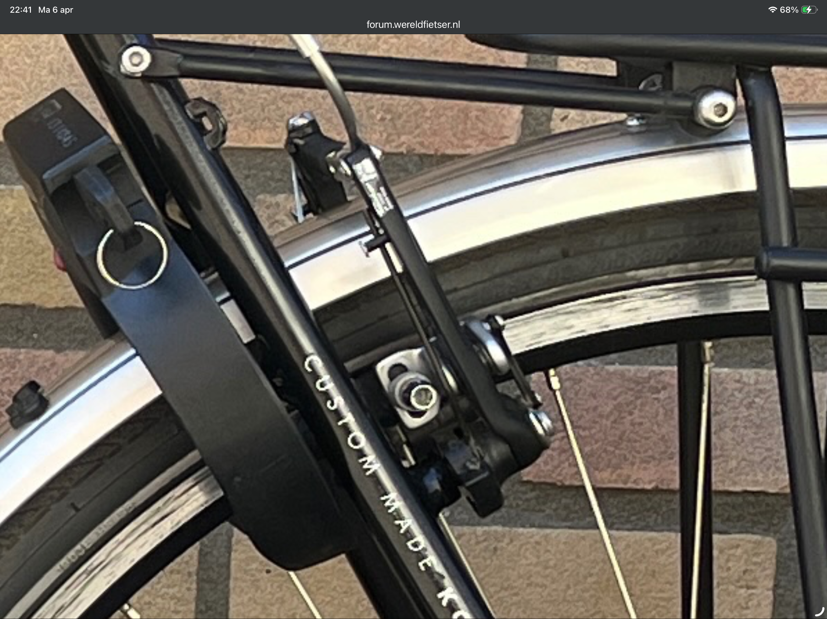 Deze mooie parallellogram remmen zijn kort rond het jaar 2000 geleverd. Dat is dan al weer 25 jaar geleden. De fiets is wel heel mooi gepoetst, dat zeker maar wel op leeftijd. Onderdelen worden al moeilijker te leveren.
