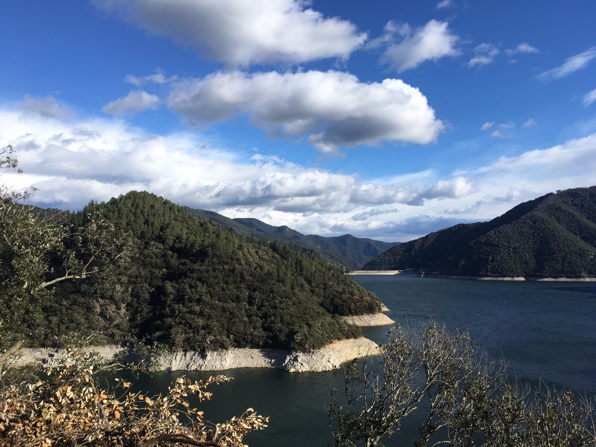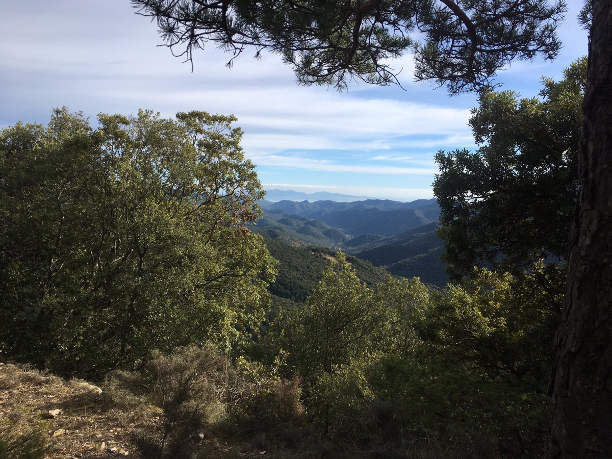 De Spaanse fietsroute blijkt een MTB route te zijn met waarschuwingen ivm de steilte. Maar de weg is vele malen beter dan de voorbije dagen, fijne gravel met hier en daar inderdaad heel steile stukken waarbij ik moet afstappen. Maar het is over het algemeen berijdbaar, ik kan zelfs rond mij kijken zonder schrik te hebben op mijn gezicht te gaan. En wat ik zie is mooi.