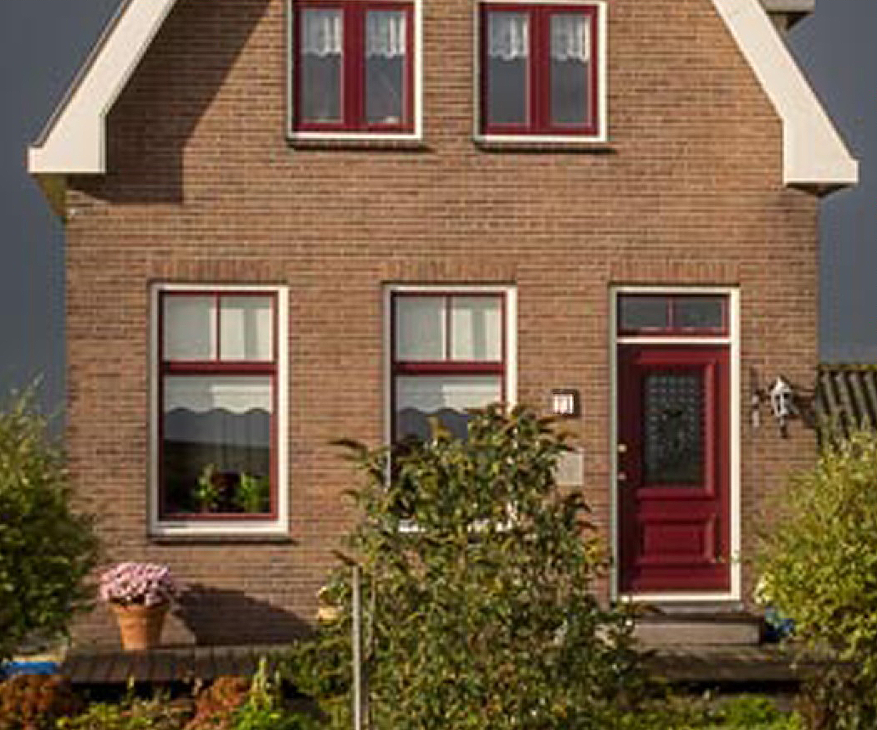 Nog een tip: als de zon op de raadselfoto zo laag staat, staat de voorgevel 's morgens ongeveer op het noorden of 's middags op het zuiden. De witte windveren kunnen aan de noordkant nogal makkelijk groen uitslaan. Tenzij die kort tevoren schoongemaakt zijn.