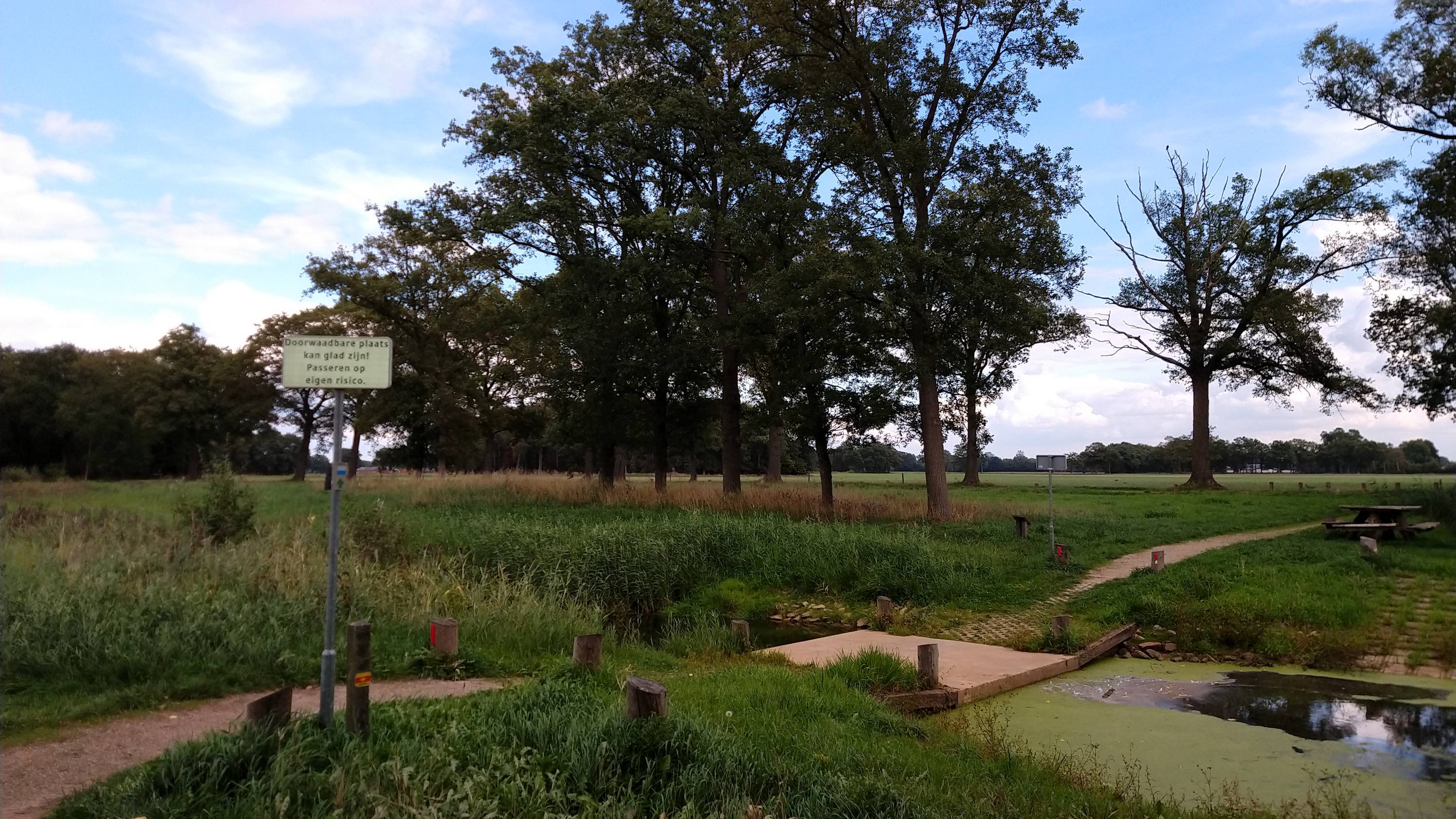 Nee, een boerenweggetje voor vee, dat over de spoorbaan (rechts buiten beeld) gaat naar een boerderij. De weg waar mijn fiets op staat, maakt wel deel uit van een knooppuntennetwerk. Het tunnneltje is wel zichtbaar op Streetview van ca. 100 meter afstand. De volgende foto is van iets verderop. Bezoek gebracht aan die molen in de verte.