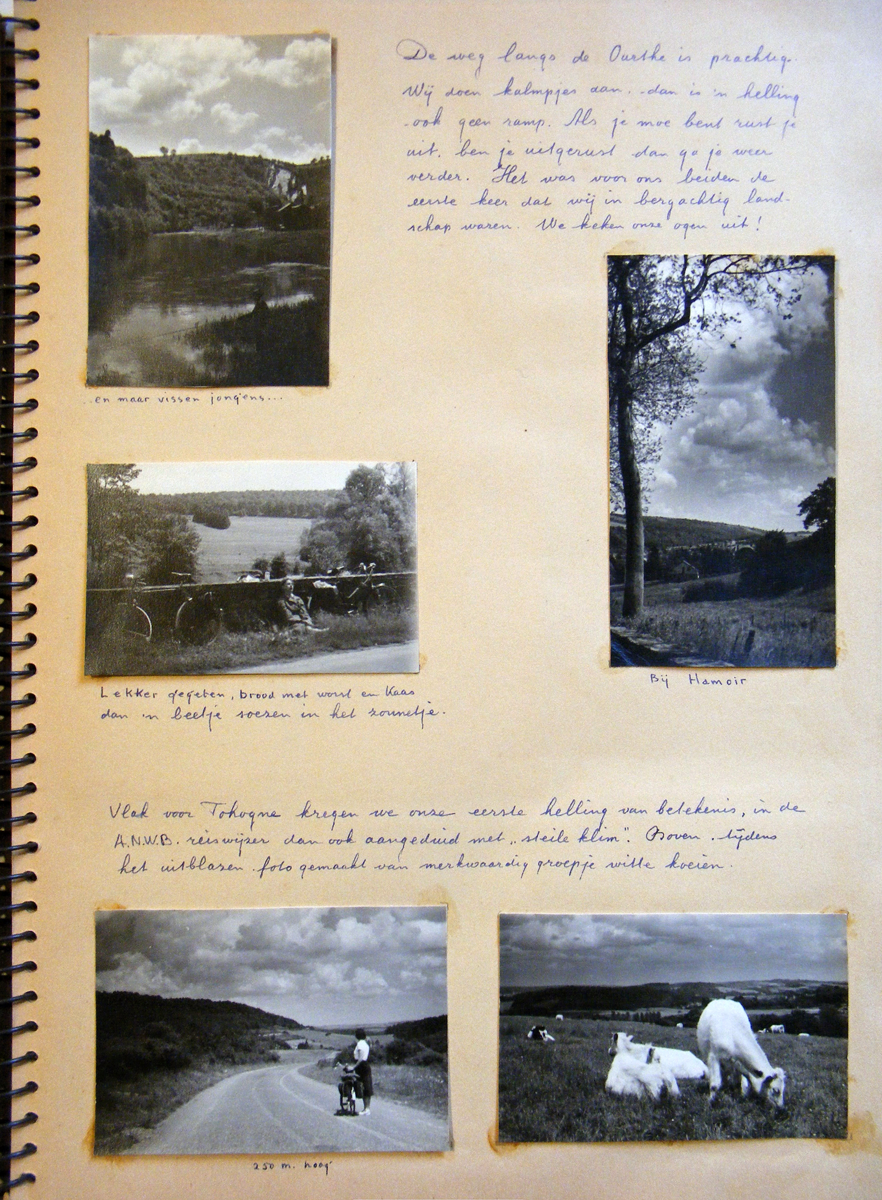 De door vader beschreven plaatsnamen in volgorde zijn: Luik (na aankomst trein), Tilff, Comblain-au-Pont (overnachting jeugdherberg), Fairon, Hamoir, Neblon, Tohogne, Durbuy en Marcourt (overnachting jeugdherberg). Nee, niet op 10 maar op 11 juni is de foto gemaakt.JanH schreef: ↑ma 27 apr, 2020 19:55De kortste weg weg Comblain-au-Pont naar Durbuy is ongeveer 20 km. Moet het tussen deze twee plaatsen zijn?Martin E. van Doornik schreef: ↑ma 27 apr, 2020 19:38Mijn ouders fietsen vanaf de richting van Comblain-au-Pont aan de Ourthe richting Durbuy. Maar op welke weg? Het was in ieder geval een middagzon op de foto. Wellicht kunnen de heuvelprofielen daarbij helpen.