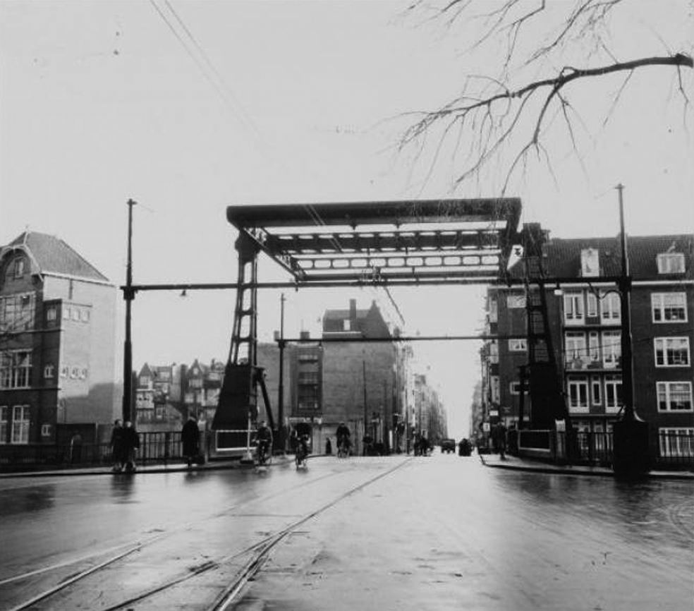 Misschien wat overdreven van me: dit hier is een klapbrug. In dit geval de brug over de Nieuwe Herengracht in Amsterdam, je kijkt hier de Weesperstraat in en links achter de fotograaf ligt het Jonas Daniel Meijerplein met de 'Dokwerker' en de twee synagoges. Op dat plein heb ik vaak gevoetbald met de jongens van de school, die in de straat links stond. De foto is van omstreeks 1960, ik heb deze brug heel goed gekend, nu is de omgeving totaal veranderd....