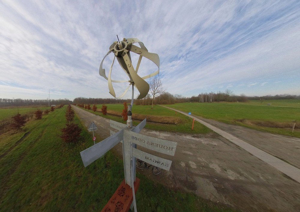 Mijn eerste indruk is ergens in Overijssel. Ik zie glooïende zandgronden, een riviertje of kanaal die oost-west stroomt, iets naar het oosten op de achtergrond een dubbele brug, de achterste vermoedelijk een N-weg, beide wegen lopen ongeveer N-Z. Je zou ook kunnen googelen naar de shirtjes van beide heren op de MTB, vermoedelijk van een plaatselijke MTB club :wink: