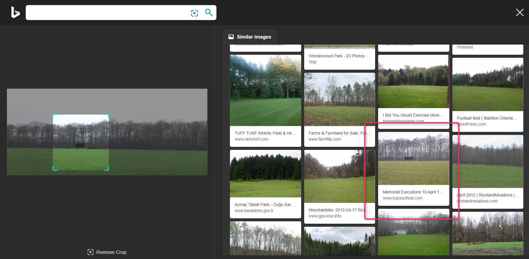 Een bosrand tegen een weide aan. Verder nihil aanknopingspunten. De lat wordt in de moeilijkheidsgraad maar hoger....