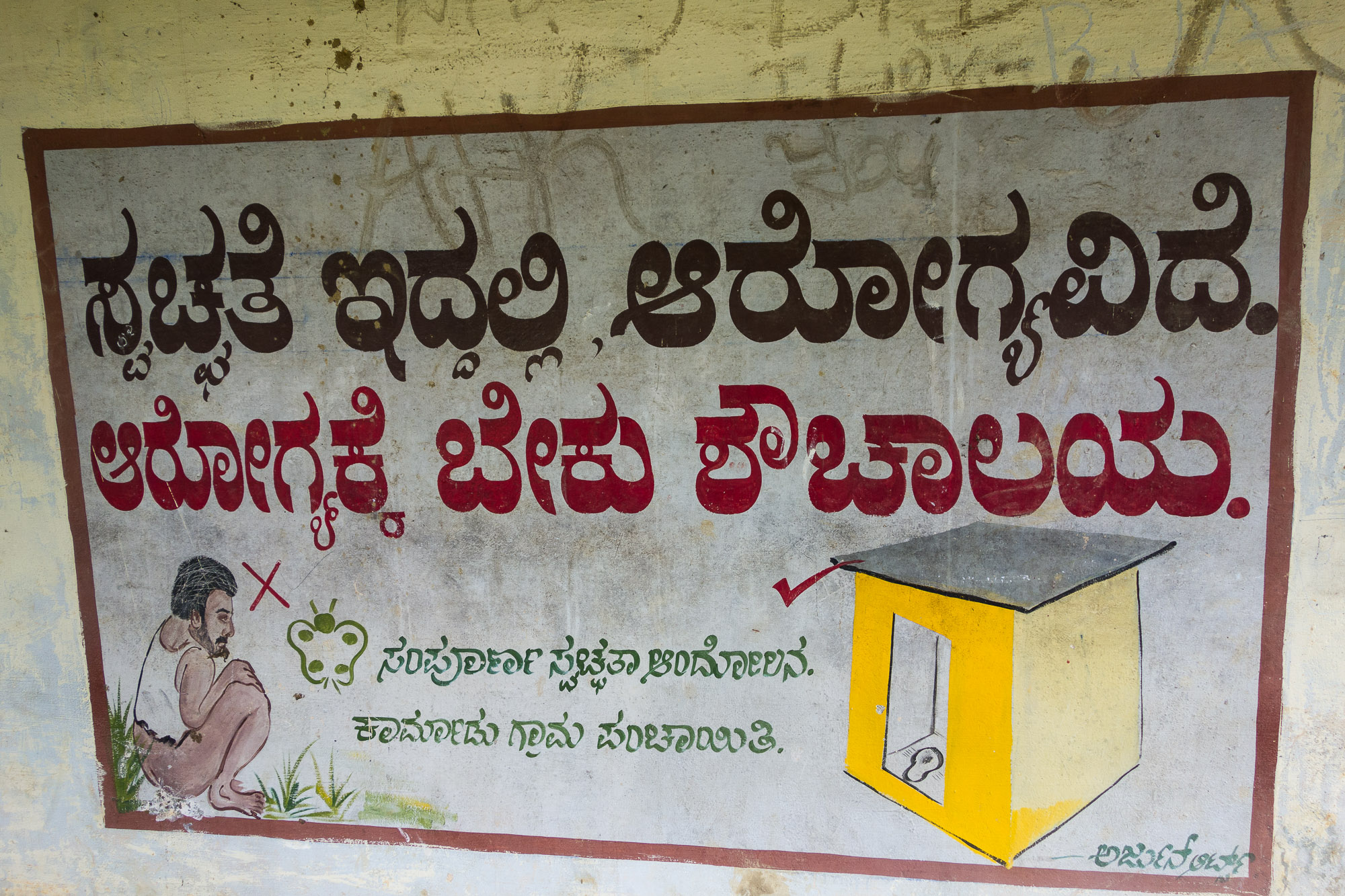 Campagne in Karnataka, India, om de bevolking de van overheidswege verstrekte toiletten in te krijgen: