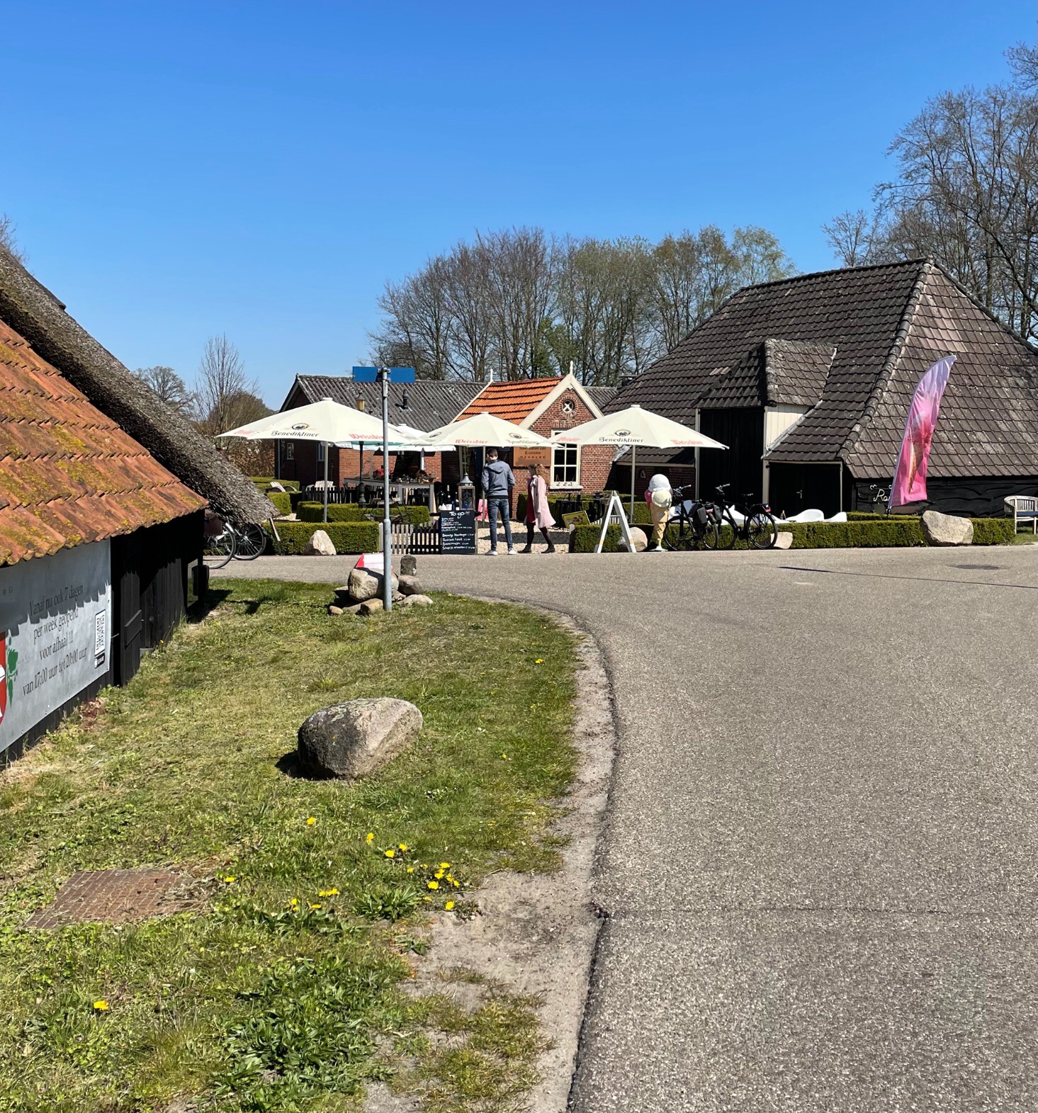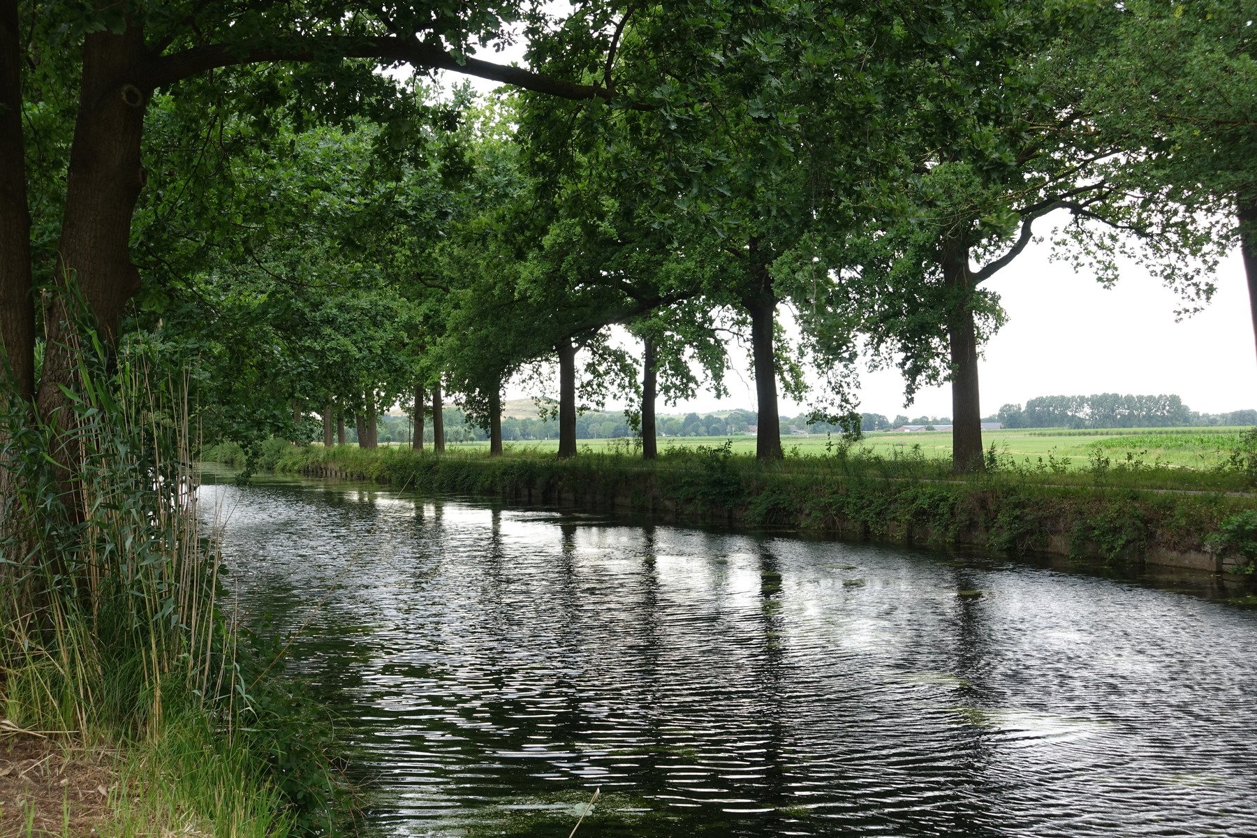 In de twee gele objecten achterin tussen de bomen op de grond zou je de teebox kunnen zien en het kale stukje in het gras de afslag in de wintermaanden, die kaal gelopen en geslagen is en nu moet herstellen.