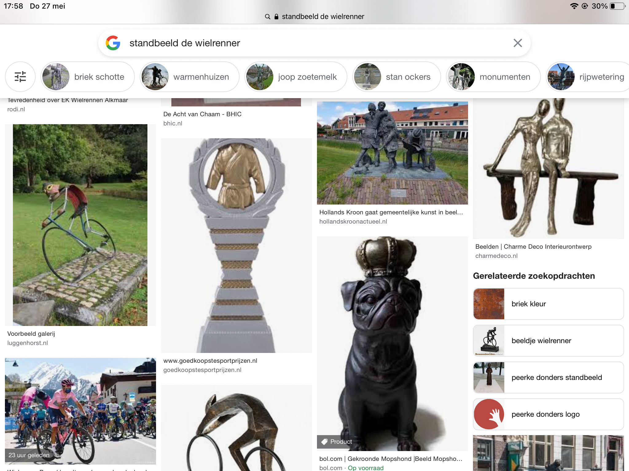 kunstwerk “de wielrenner” in google vond hem niet, maar Google is niet de enige die een zoekmachine heeft. Bing vond wel het resultaat.