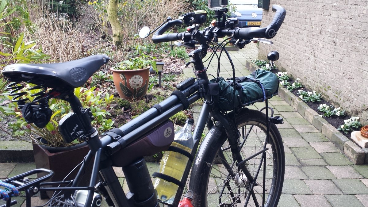 Dat kon alleen op gewone fietsen met een gewoon stuur. Op de foto uit 1973 had ik nog geen stuurtas en ook geen veel kabels voor remmen en shifters voor derailleurs. Tegenwoordig wordt het een ander verhaal....fud0 schreef:De oplossing voor op het stuur ziet er handig uit, als je het dusdanig idd. kunt vastmaken dat het 'los' van het stuur zit en het je verder niet hindert.