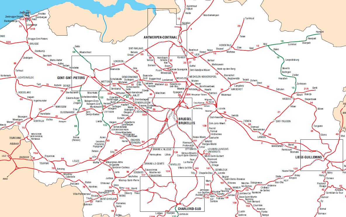 Helaas lopen heel veel trajecten in BE over de centrale N-Z as in Brussel.