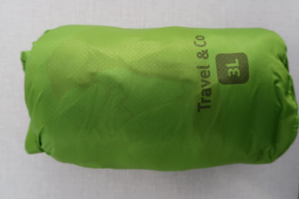 Even wat gemeten: mijn fleecejack, dik fleece, al goed gebruikt, maat XL, weegt 490 gram en kan ik zonder veel moeite oprollen tot een pakketje van 21 cm lang en 13 cm diameter.