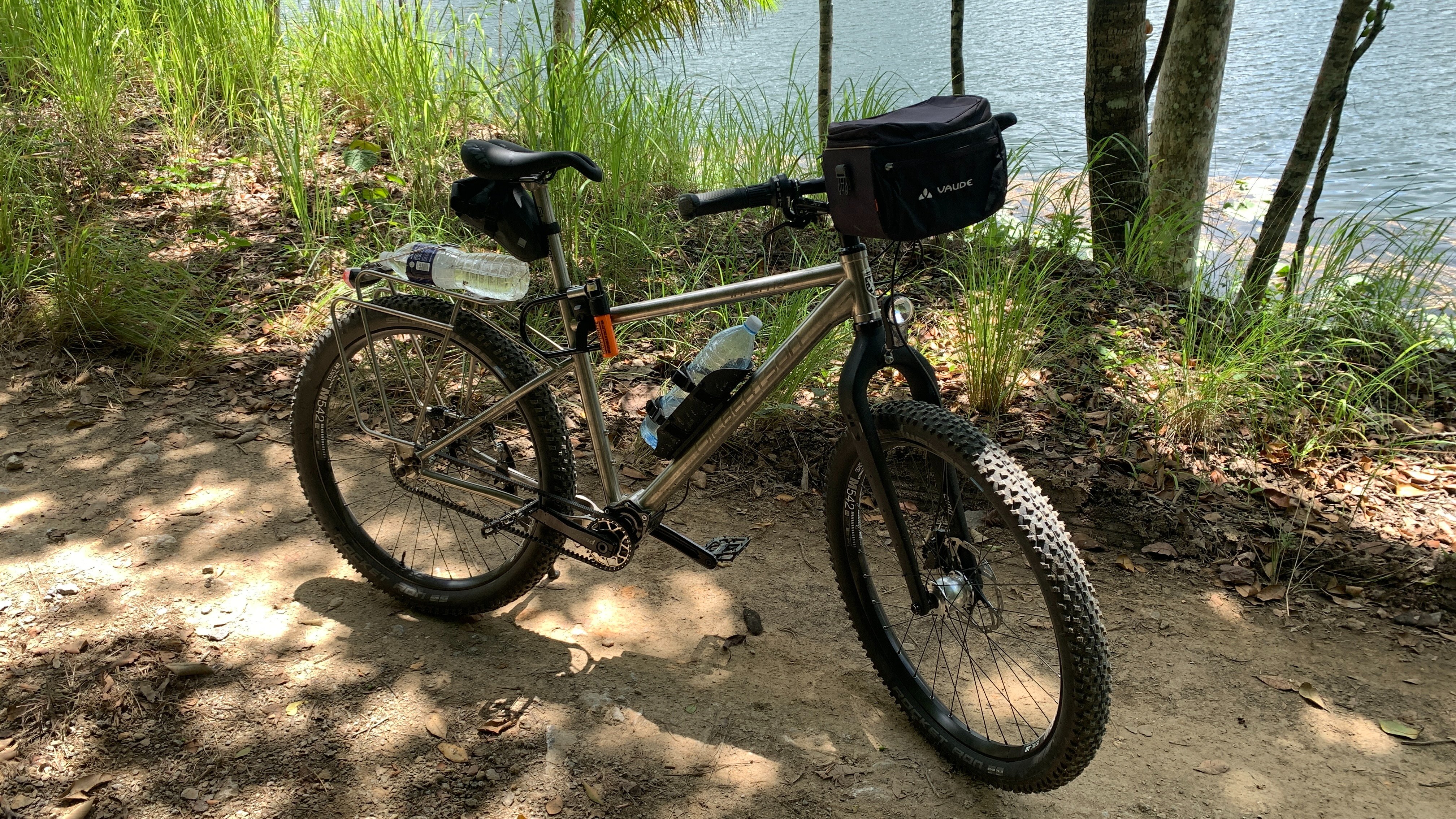 Het is een nieuwe geworden met een op maat gemaakt Titanium frame. Is nu alweer een tijdje op Cuba waar ik hem aan het inrijden ben. de 27,5" wielen inmiddels vervangen door 29'.