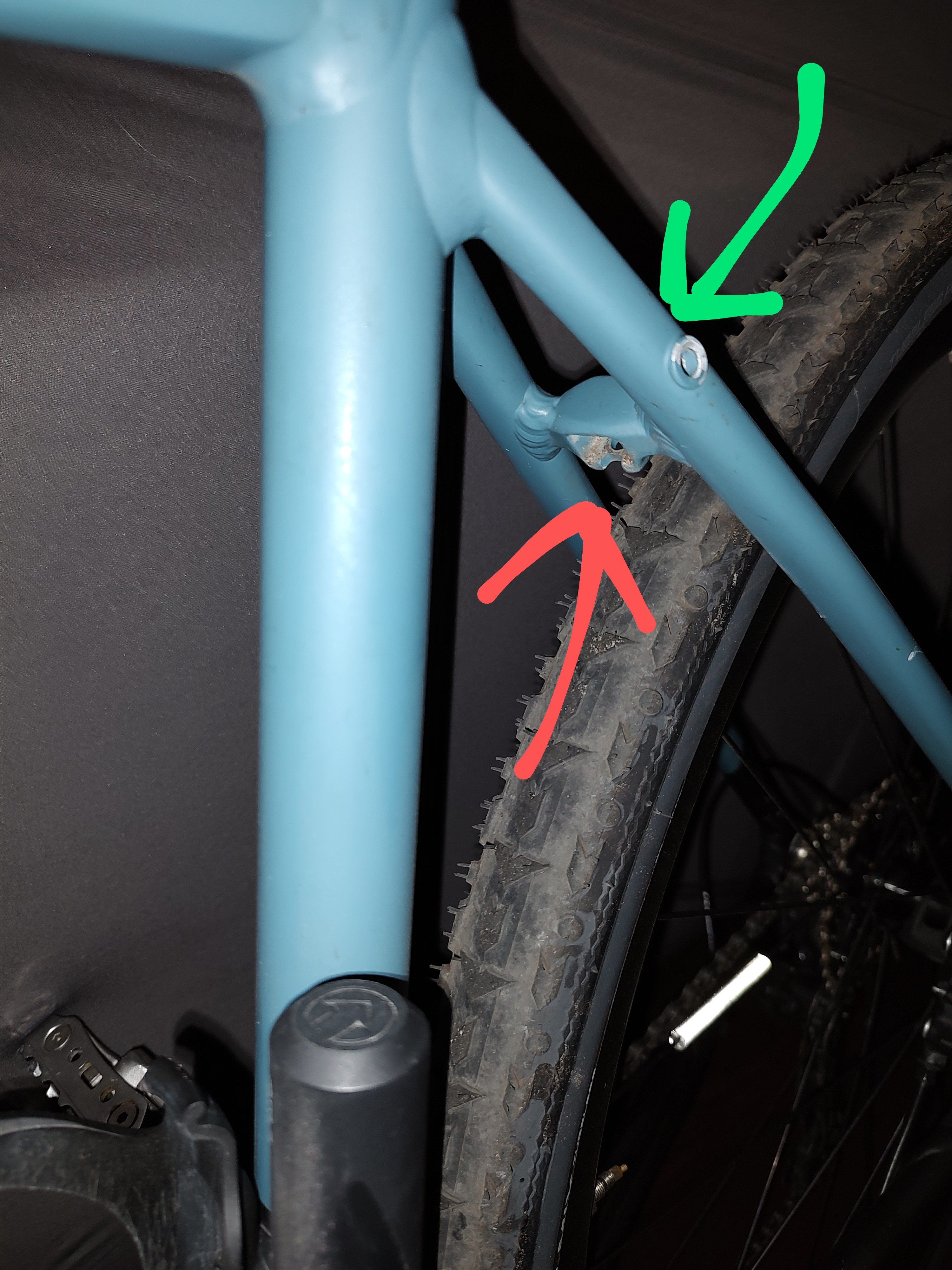 Oh, niet goed gekeken. Deze drager zit aan het spatbord. Ik heb zelf een bijna zelfde Acid-drager, zoals op de bovenste foto. Die zit muurvast aan de brug (?) in de achtervork. Is erg stabiel, ook downhill met volle bepakking. Hij zit op mijn Nuroad Race van 2019, en ik wissel af met een bagagedrager met een rekje bovenop als ik langer wegga. Op de laatste hangen de tassen een stuk hoger waardoor het frame een beetje gaat wrikken, vooral bij afdalingen.