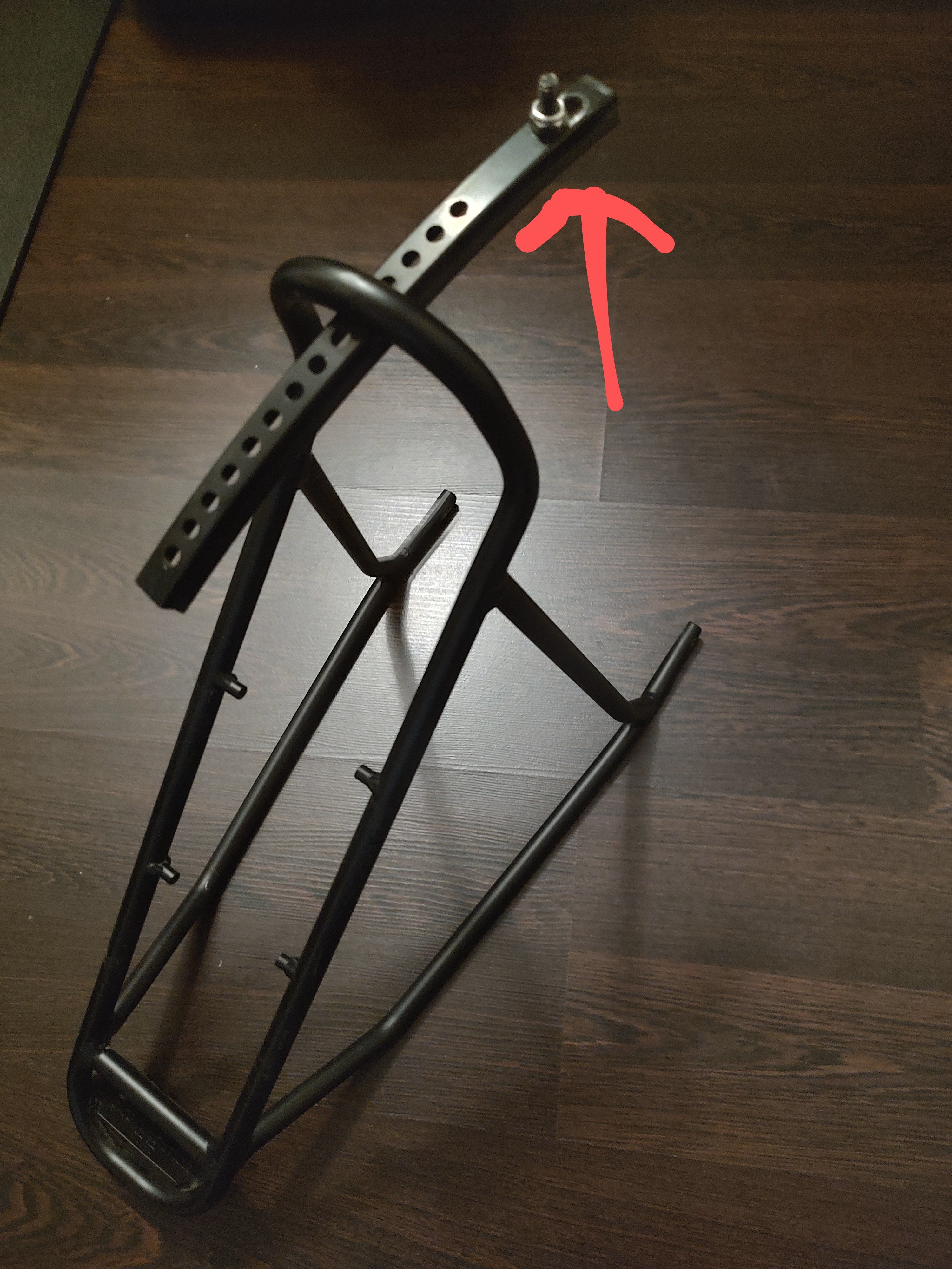 Op mijn VSF woon-werkfiets zit een Racktime-drager ook op deze manier bevestigd terwijl er oogjes aan de staande achtervorken zitten. Het waarom van deze manier om een bagagerek op een fiets te schroeven ontgaat me, of het moet zijn dat hier op een bevestigingspunt van het achterspatbord bespaard wordt.