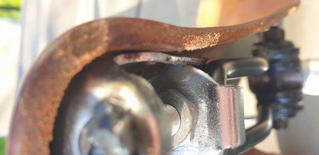Totdat een bevriende fietsenfabrikant zag dat een nokje van de houder van de stelschroef naast de stang lag. Op de ene foto zie je dat het nokje er wel op ligt, op de andere zie je niet eens het nokje, wat er wel is.