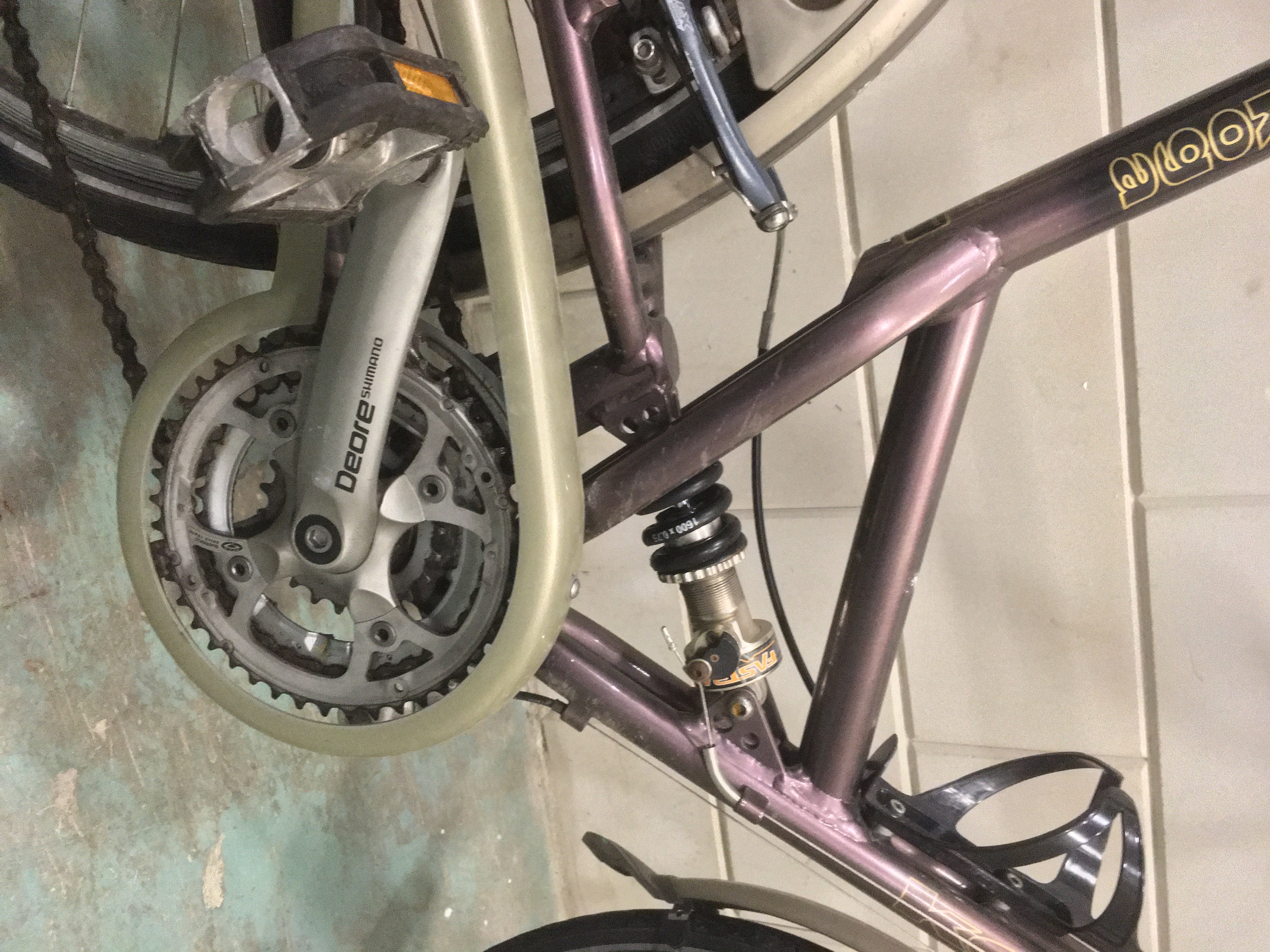 Da's een tijdje hip geweest die voor- en achtervering bij de tourfietsen van Koga. Ze hebben zelfs nog WorldTravellers ermee gehad. Ook Giant heeft nog een paar modeljaren meegedaan met een Expedition full suspension. Niet de meest waardevaste investering en ik zou ook niemand adviseren om zo'n ding te kopen, maar als je 'm gekregen hebt... gewoon eens kijken of het wat kan worden voor je.