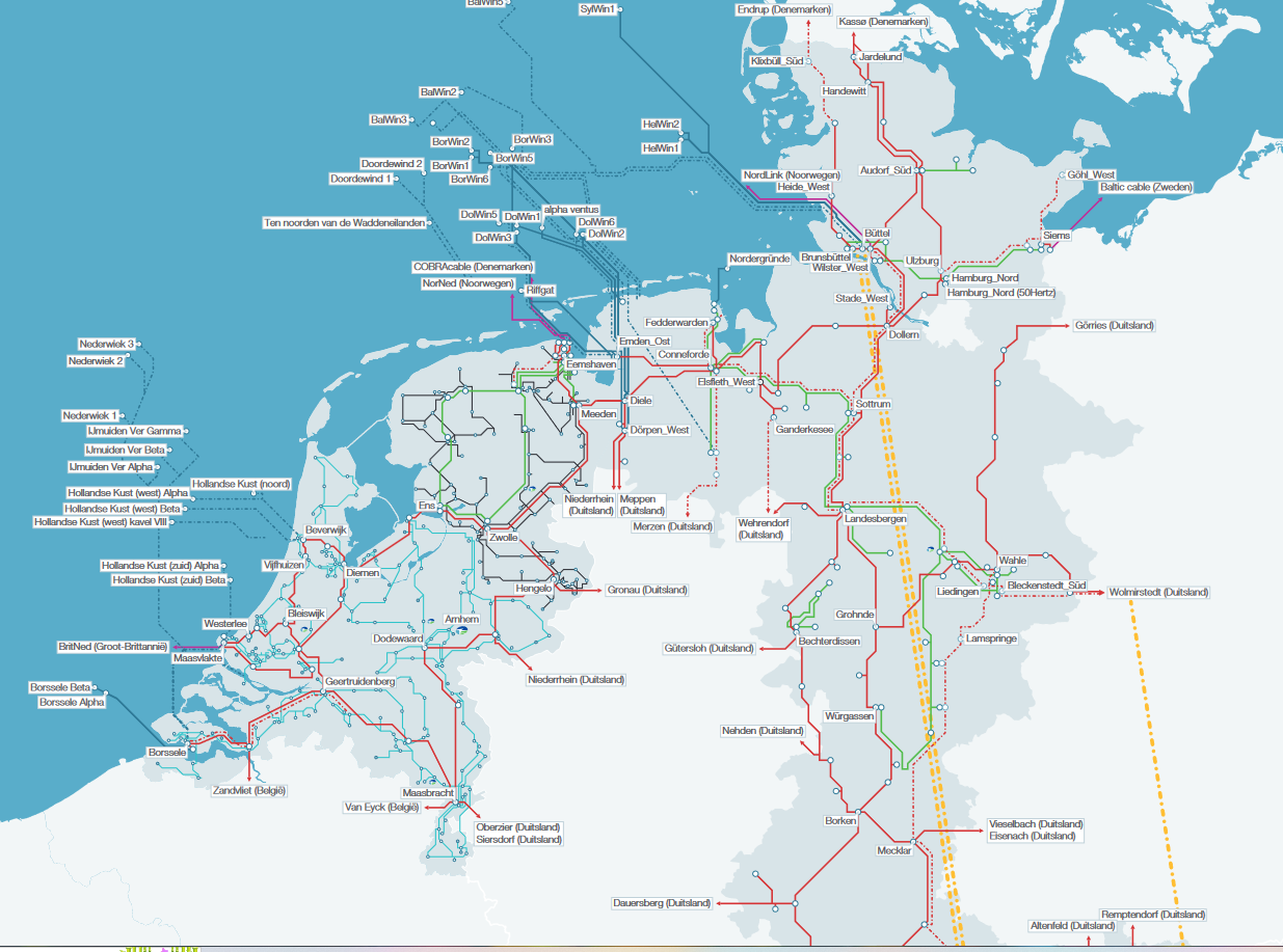 Tennet hoogspanningsnetwerk kaartje