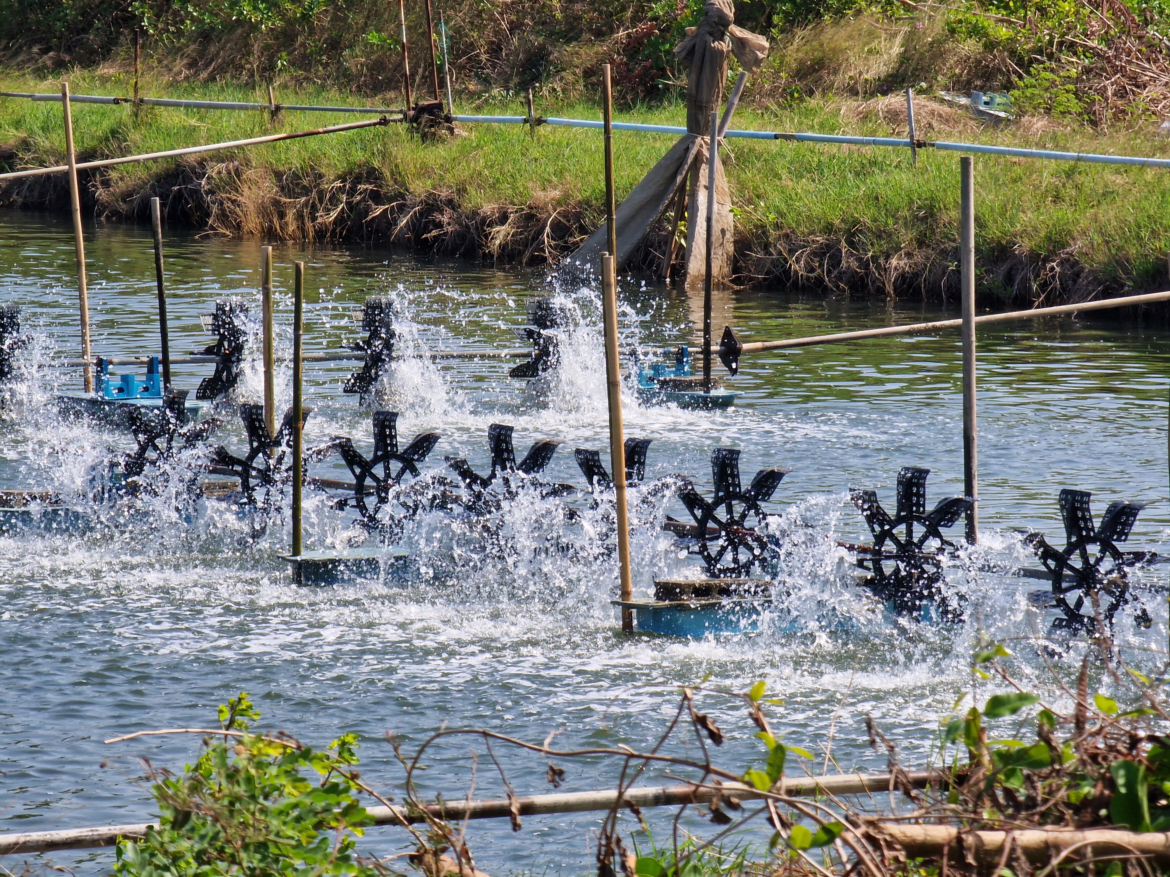 Aeratiesysteem van een shrimp farm