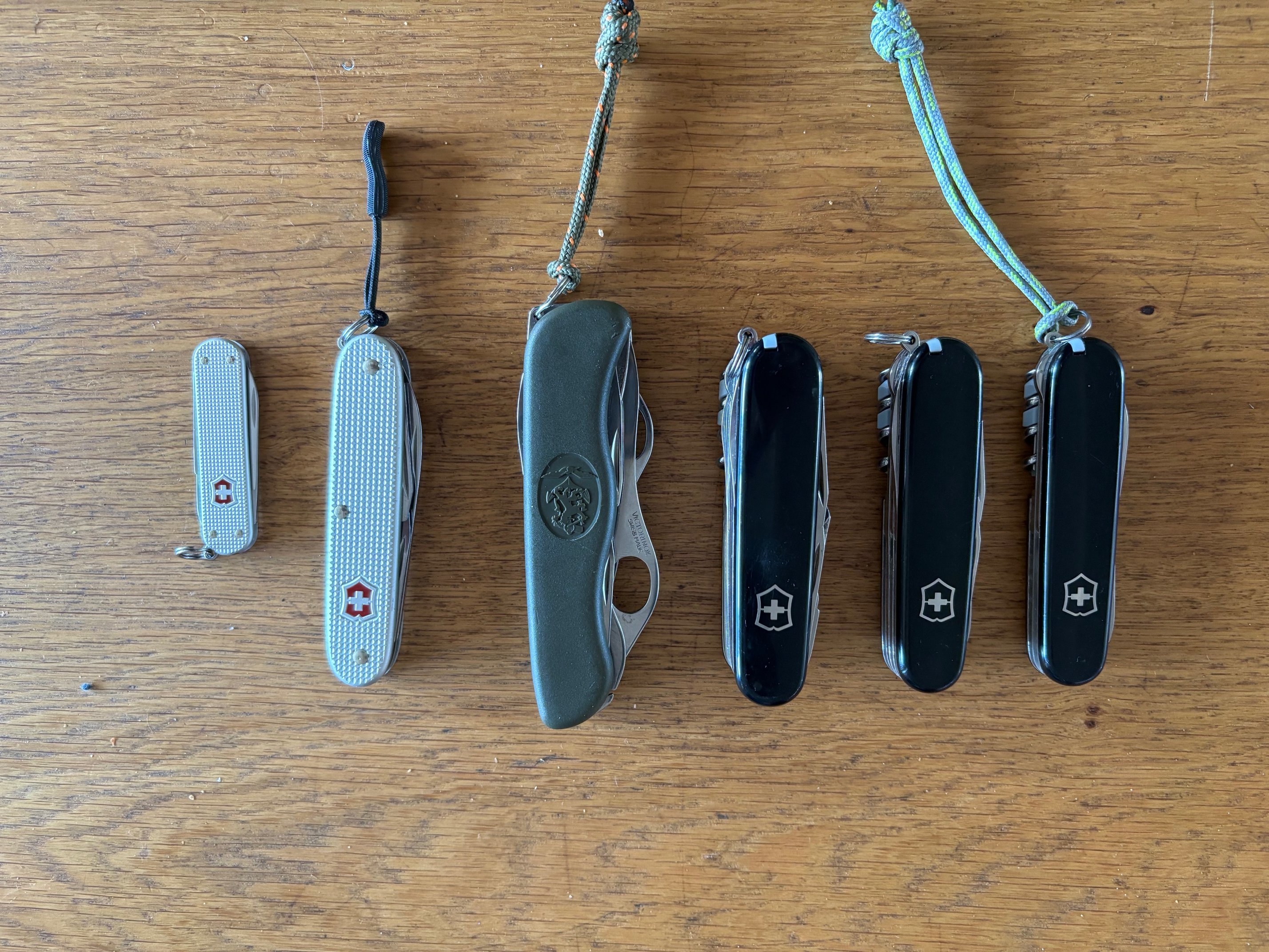 Maar een Victorinox van Defensie in 111 mm gaat ook nog wel eens mee ipv de Huntsman of Swiss Champ.