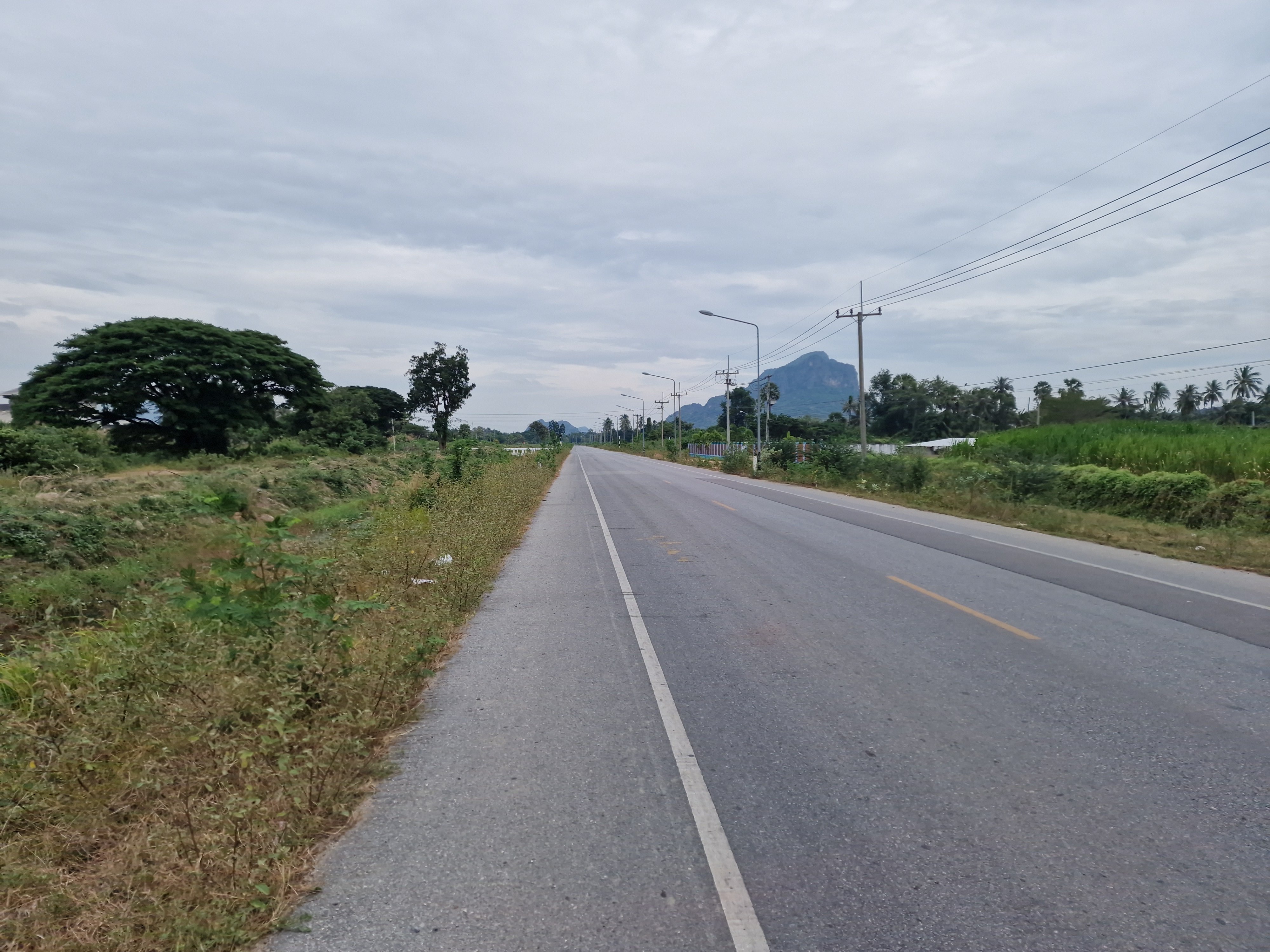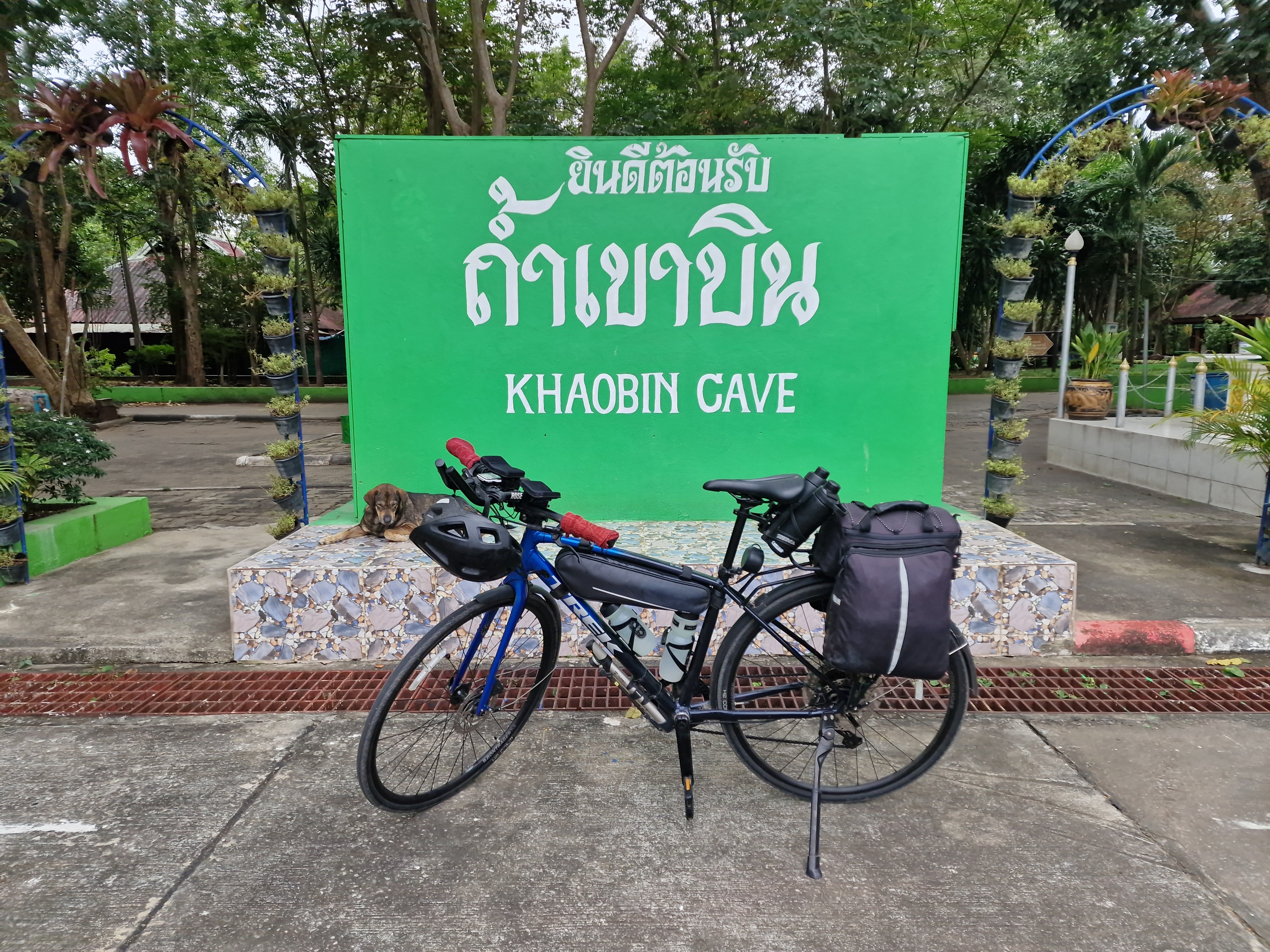 Vandaag spring ik terug op de fiets om het tweede, wat onvoorziene deel van de reis te beginnen. Na een verrukkelijk lekker en uitgebreid ontbijtbuffet rij ik Huahin uit. Op het menu staan bijna uitsluitend wegen langsheen irrigatiekanalen. Dat wil zeggen: geen hoogtemeters, maar wel de hele dag tegenwind. Toch gaat het fietsen goed. Zeer goed zelfs. Ik geniet met volle teugen van de draaiende benen. Ik lig ontspannen op het ligstuur en word niet moe. Strakke banen, meestal met brede zijstrook, leiden me noordwaarts. Het wordt namiddag en ik heb geen zin om te stoppen. Misschien geraak ik nog tot Inlaya Resort even buiten Ratchaburi, een mooi resort dat ik op Google Maps had gespot. Dat lukt nipt, want ondertussen zijn mijn powerbank en smartphone, na 132 km, helemaal leeg. Voldaan van de lange rit kom ik de receptie van het chique resort binnen. Daar vertelt men me dat alles volboekt is door een huwelijksfeest op het domein. De receptionistes maken me geen smoes wijs want algauw passeren piekfijn uitgedoste gasten langs mijn bezweet spandex lijf. Ik maak duidelijk dat ik niet meer kan navigeren en dat ik graag mijn telefoon zou laden, desnoods tegen betaling. Gelukkig kan dat (zonder kosten) en heb ik mijn snellader mee. Enkele fridrankjes later is de telefoon weer helemaal vol en zoek ik een alternatieve overnachtingsplaats in de buurt. Google Maps vertelt me dat Cozy Secret Place 3 kilometer verderop te vinden is. Klinkt goed want binnen anderhalf uur is het pikkedonker. Ik fiets weg van het irrigatiekanaal, een kleine zijstraat in, op zoek naar die Cozy Secret Place. Honden blaffen me na. Ik kom terecht op een onbestemde plek, de betonnen weg loopt dood op een zandweg die in het bos verdwijnt. Weeral komen blaffende honden aangerend, een stuk of vijf deze keer. Ik sta stil en ben omsingeld. Traag til ik mijn fiets op en keer hem 180 graden. Ik vertrek zachtjes en de honden lijken daar vrede mee te nemen. Enkele honderden meter verder komen nog twee enthousiastelingen me achtervolgen. Ik geef hen een luide toeter en dat lijkt wel te werken. Cozy Secret Place heeft zijn naam goed gekozen – het zal altijd een geheim blijven voor me waar het precies is. Ik besluit niet verder rond te dolen op het met honden verzadigde platteland en besluit 15 kilometer terug te rijden naar Ratchaburi stad om daar het eerste beste hotel te boeken. Het wordt een familiekamer in Tulip Hotel. Dat ik na 150 kilometer mijn fiets met baggage nog via de trap naar de eerste verdieping moet zeulen neem ik er graag bij. Blij dat ik een kamer heb. Na de verfrissende douche besef ik dat ik vandaag enkel een ontbijt en één energy bar heb gegeten. Toch voel ik me nog goed – dit is een superdag waarop alles lukt blijkbaar. En er is nog goed nieuws: naast Tulip Hotel ligt een 7-Eleven: lekkers bij de vleet!