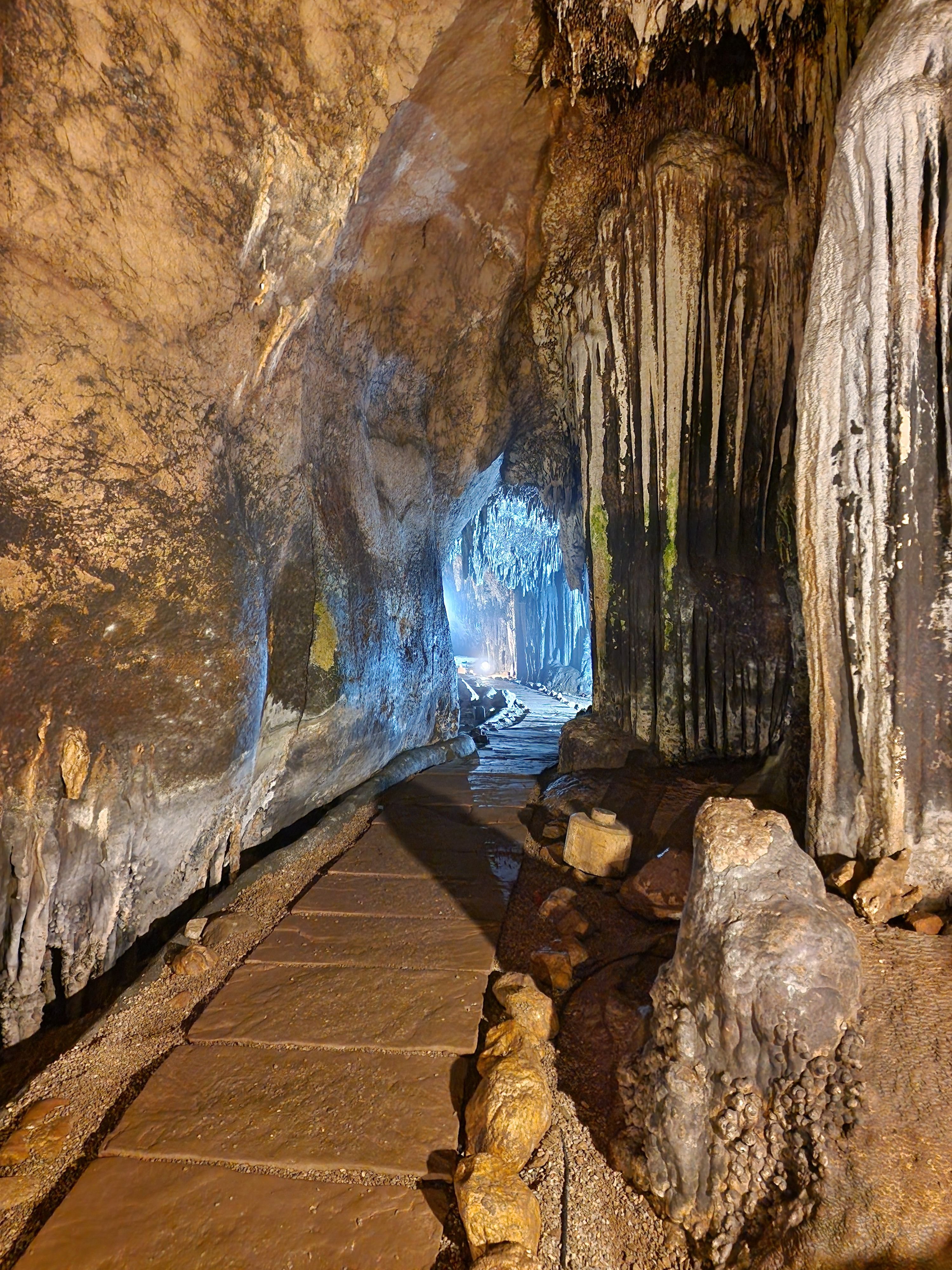 Wandelpaadjes, ventilatoren en verlichting. Een heel 'ontwikkelde' grot.