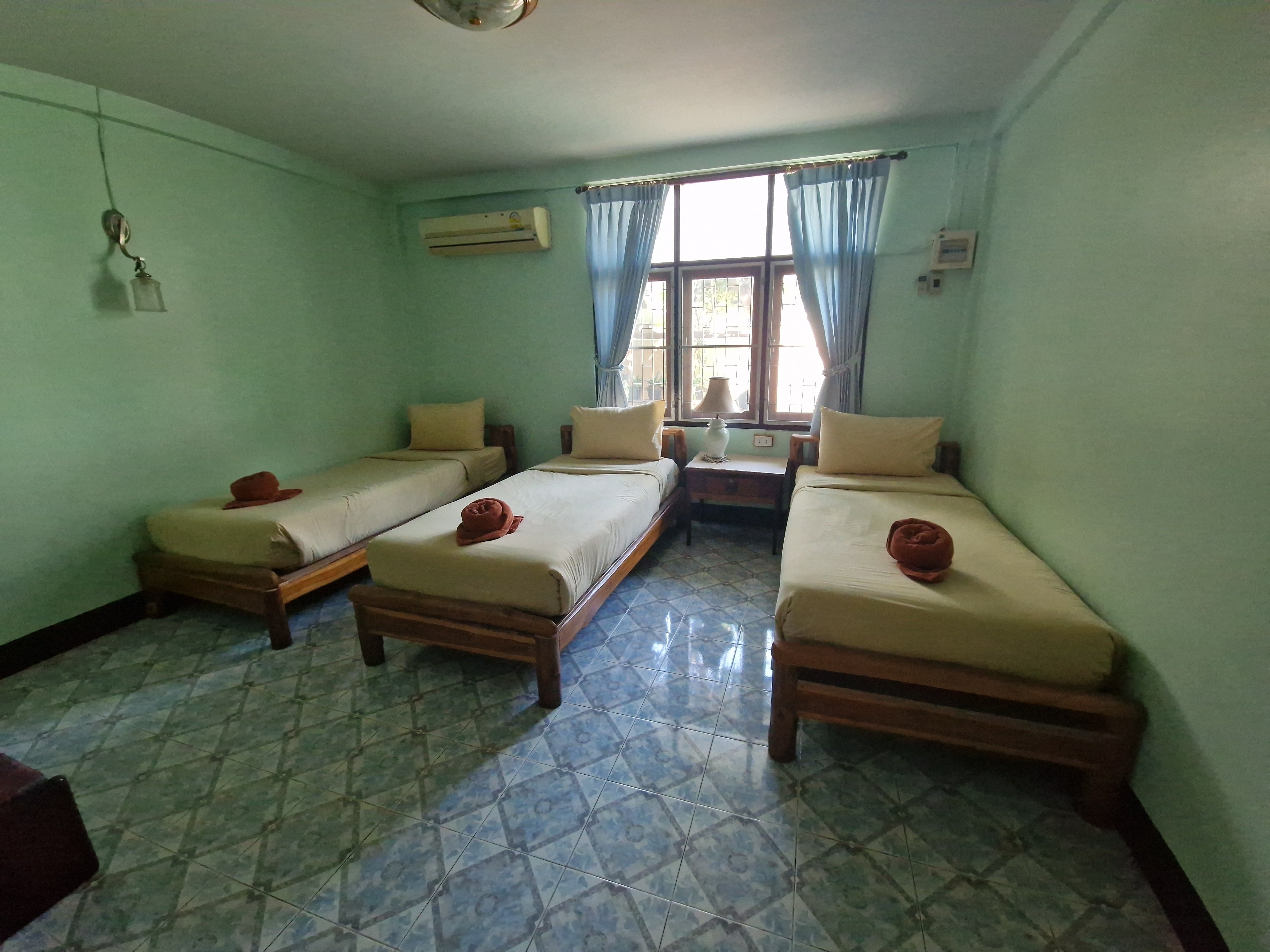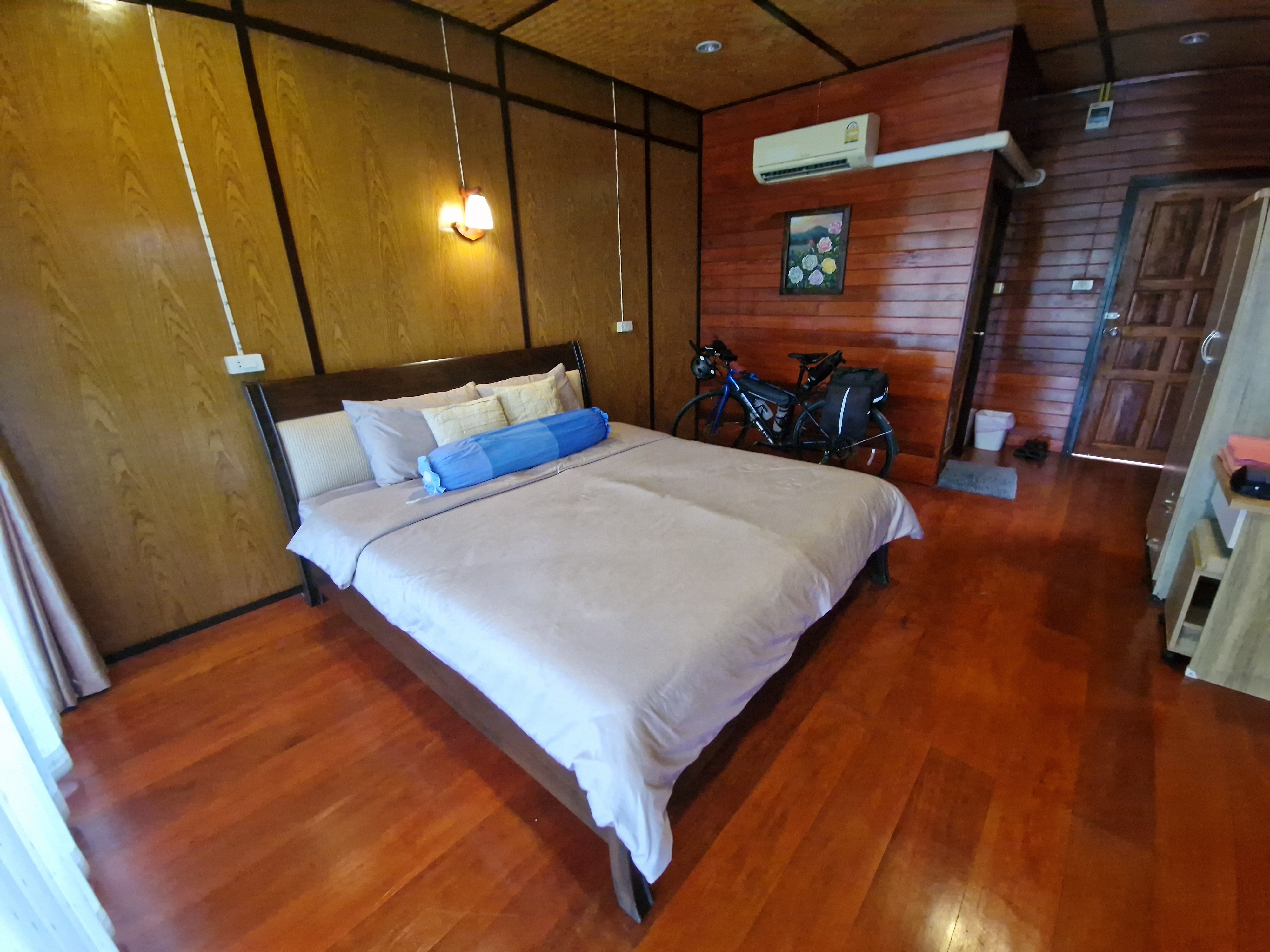 Bij het tweede hotel is het raak: daar is nog een kamer met drie één-persoonsbedden vrij voor twee nachten. Die neem ik, want ze is meer dan ruim genoeg om mijn fiets mee binnen te nemen. De prijs van de kamer is exact de helft van die van vorige nacht. Dit geldt ook voor de vriendelijkheid van het personeel, kamerafwerking en kwaliteit van het ontbijt. You get what you pay for.