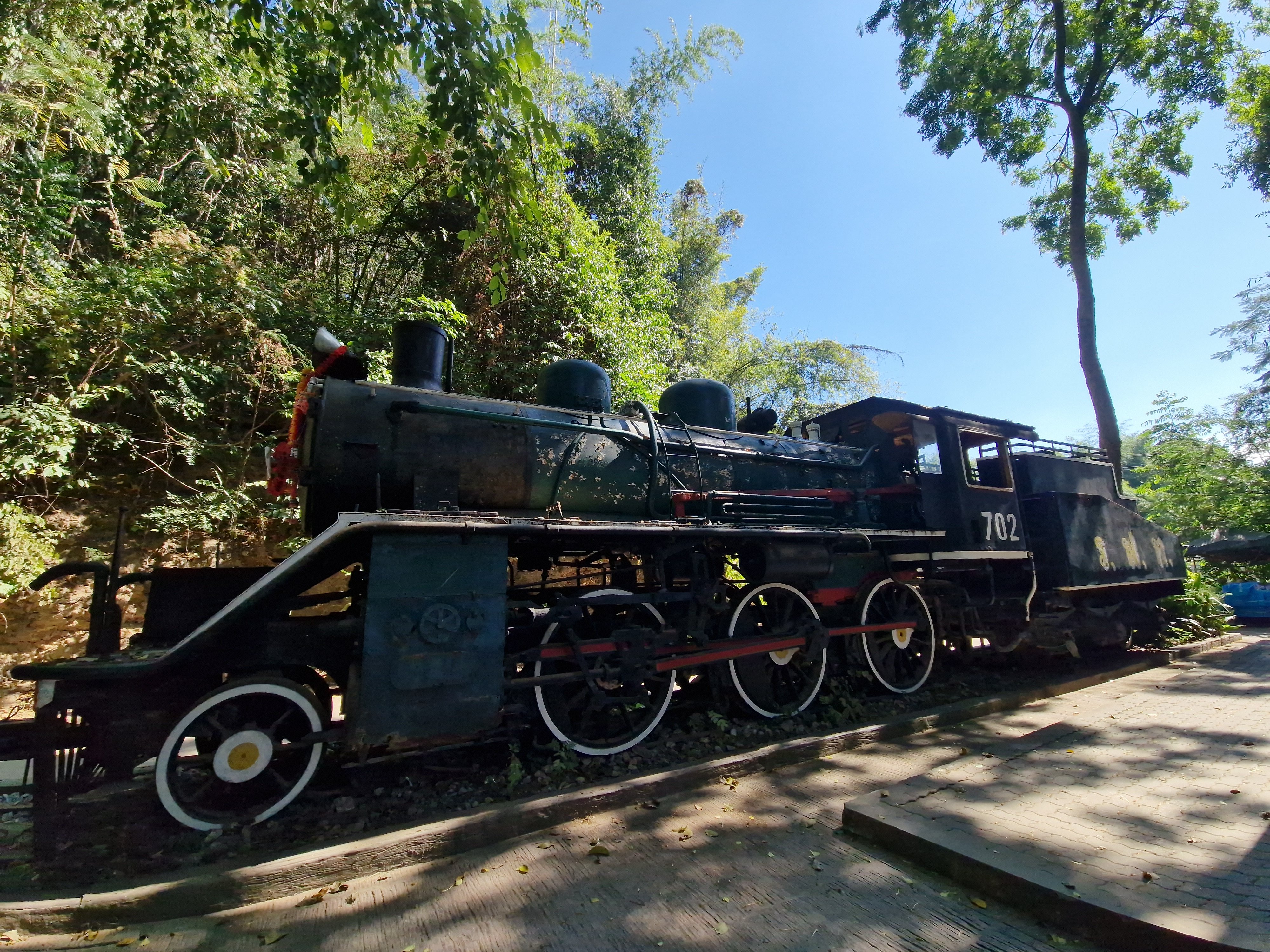 De oude trein aan het Sai Yok Noi eindstation.